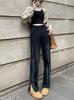 Estilo americano High Street Jeans Feminino Outono e Inverno All-match Straight Tie-dyed Split Calças Loose Wide-leg High-cintura Slim-fit Calças