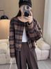 Outono e inverno novo gola redonda estilo francês Chanel xadrez dupla face casaco de lã feminino elegante casaco curto de lã de alta qualidade