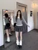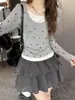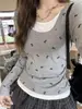 Outono Nova Blusa Elegante All-match Nicho Falso Duas Peças Protetor Solar Top Laço Estampado Fino Manga Comprida T-shirt para Mulheres