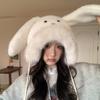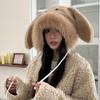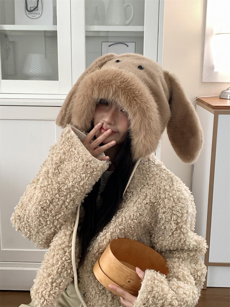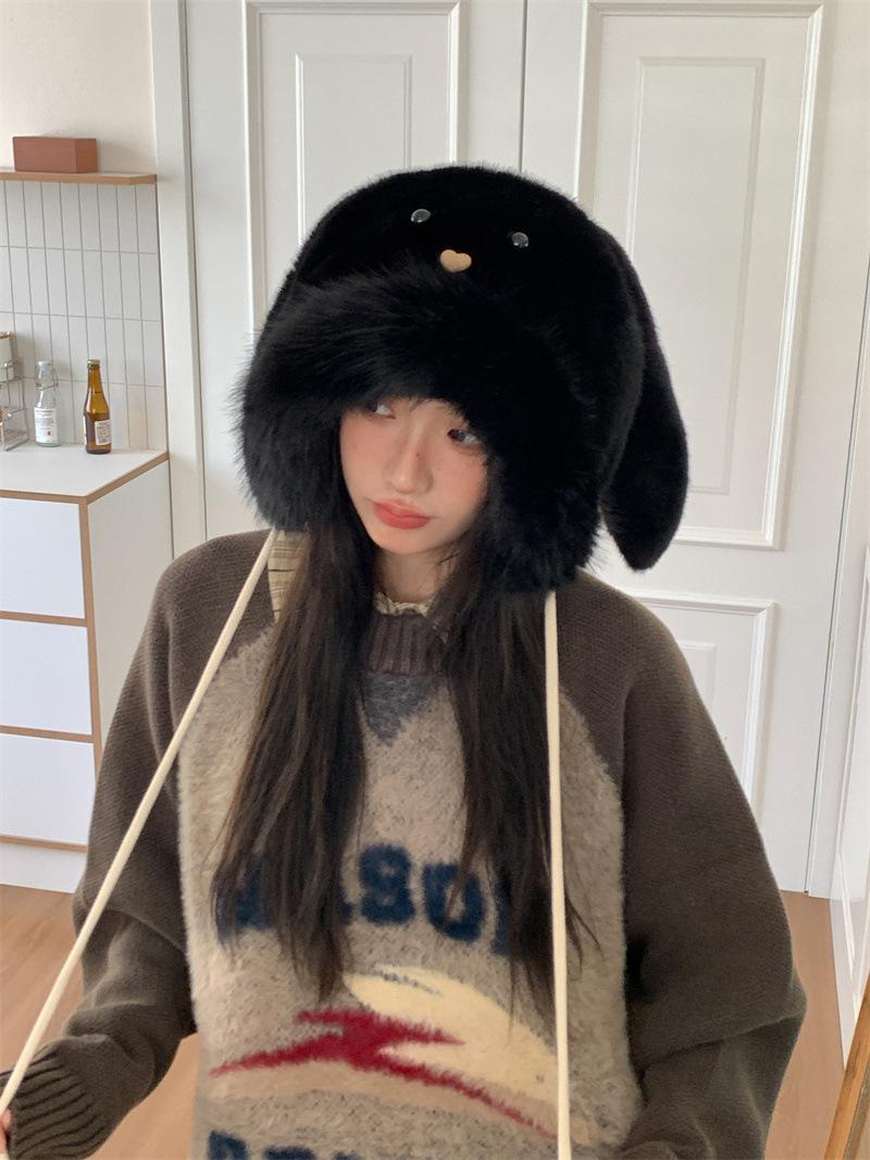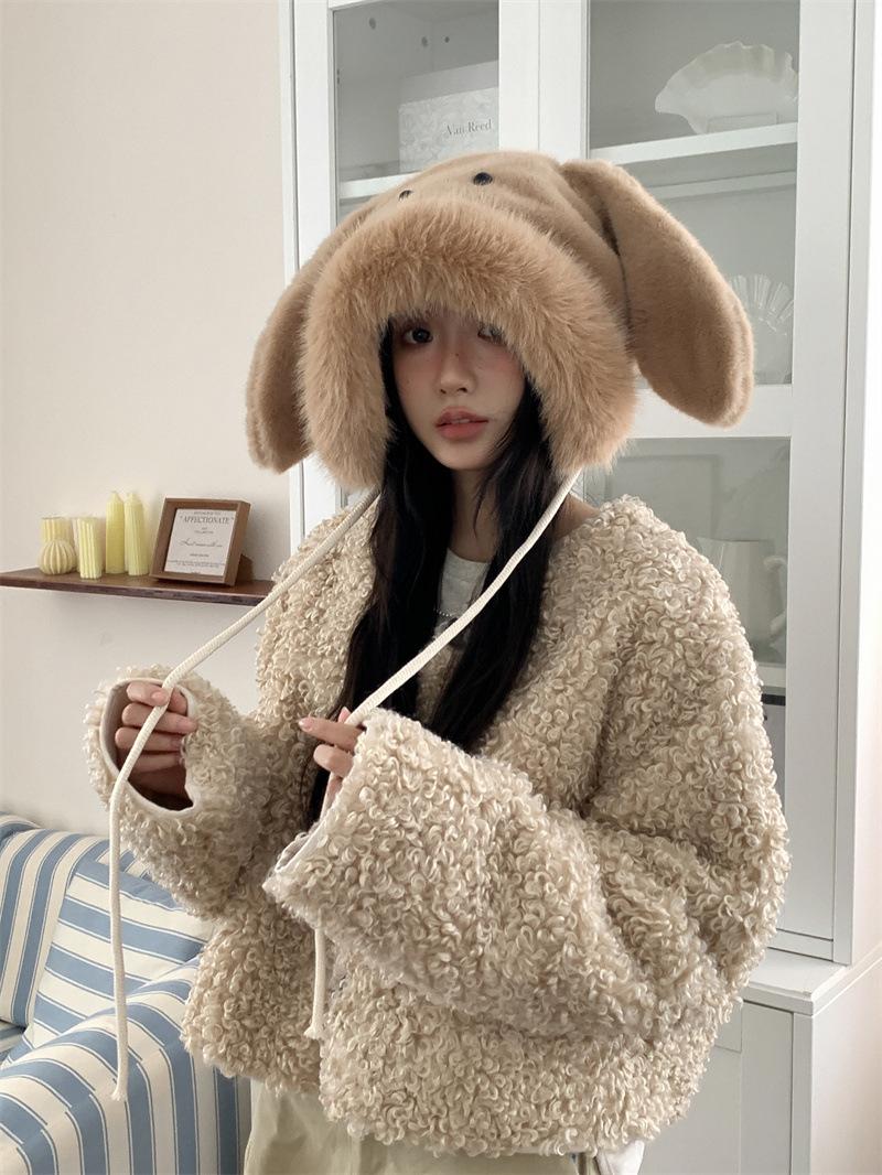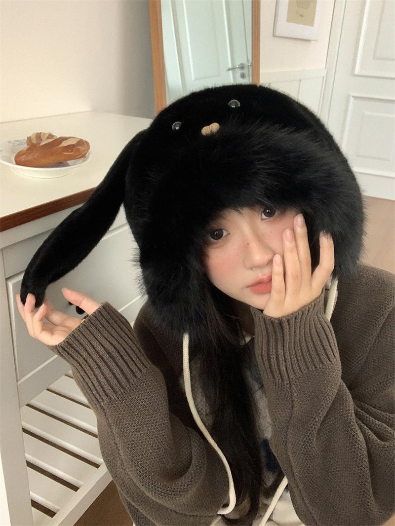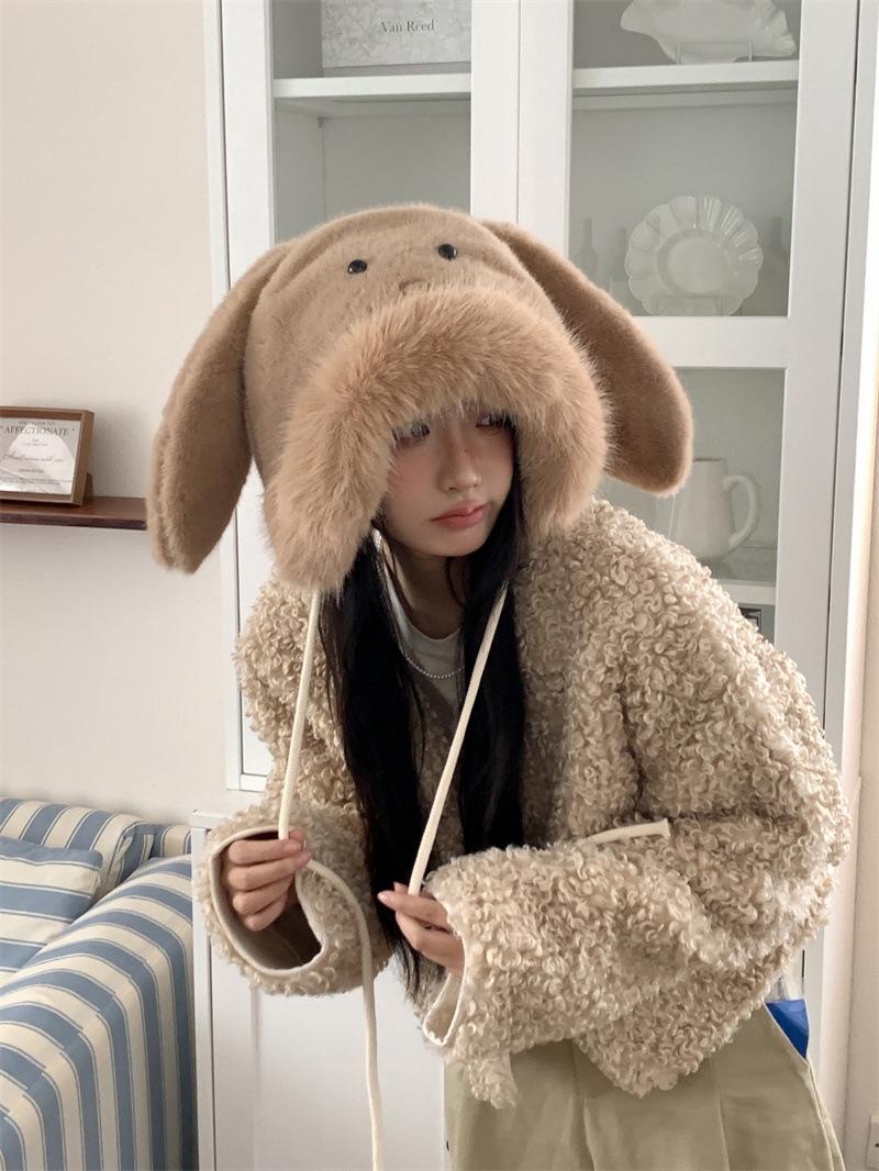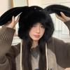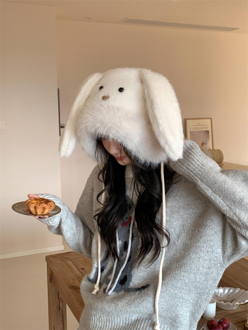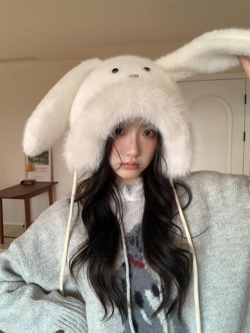 Chapéu fofo com orelhas de coelho fofo para mulheres outono e inverno estilo coreano chapéu de proteção auricular para ciclismo à prova de frio forrado de lã chapéu Lei Feng quente
