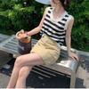 2023 Verão meia gola alta colete de malha colete feminino solto 2023 manga curta top de malha feminino