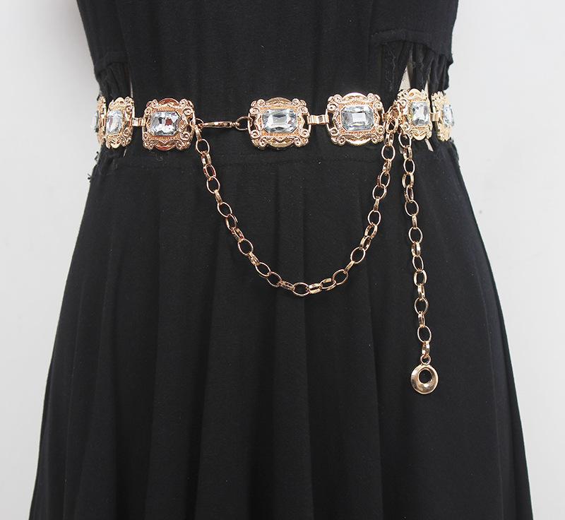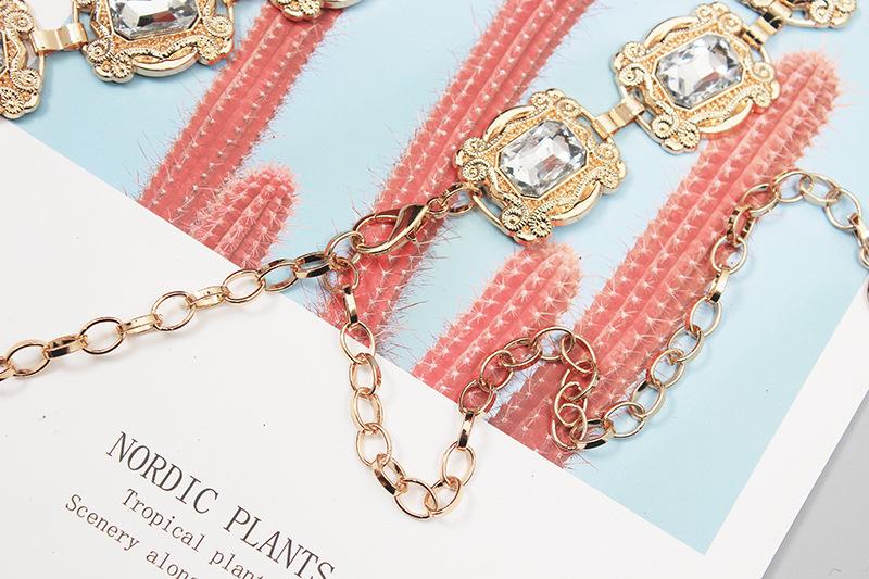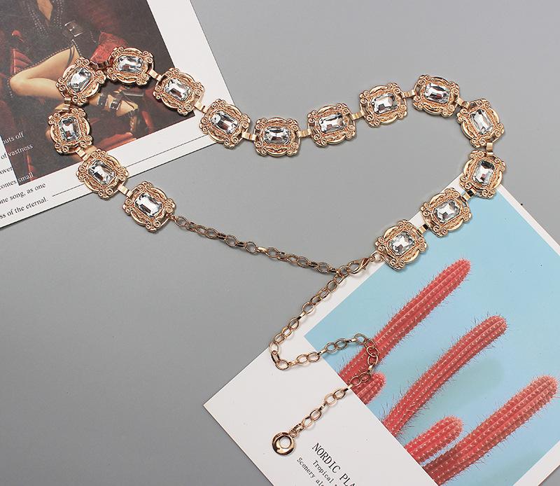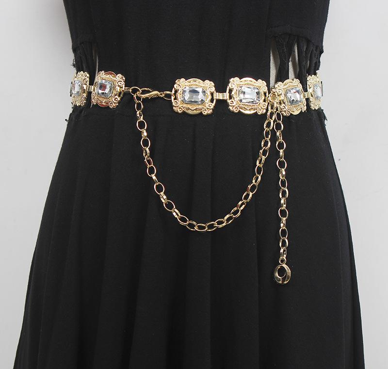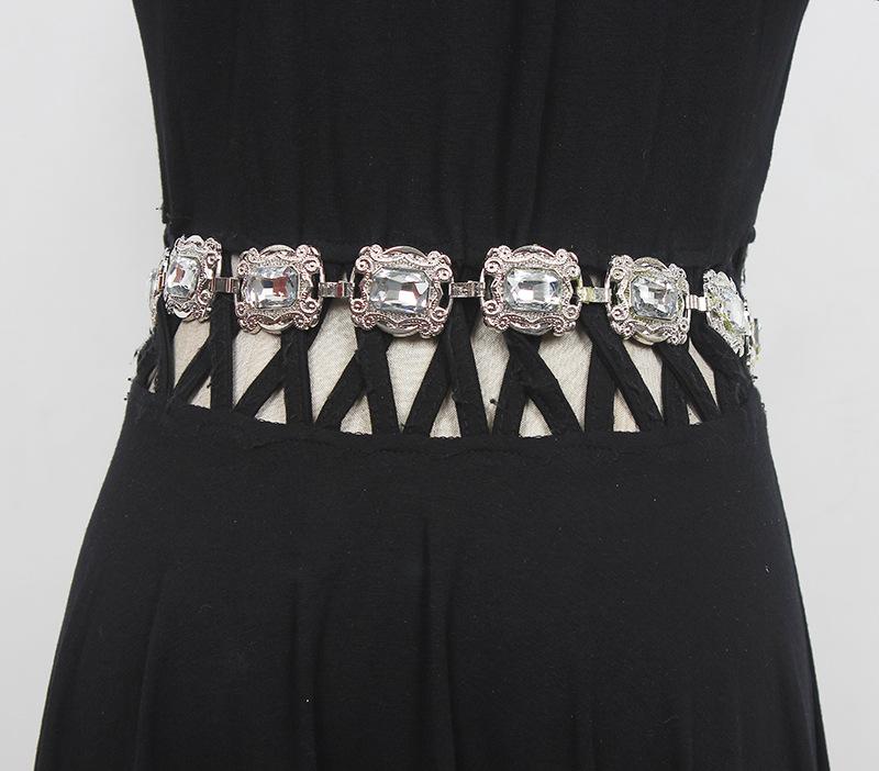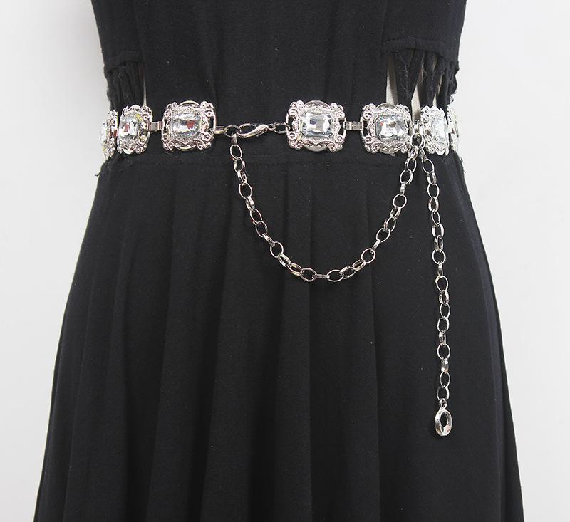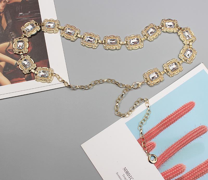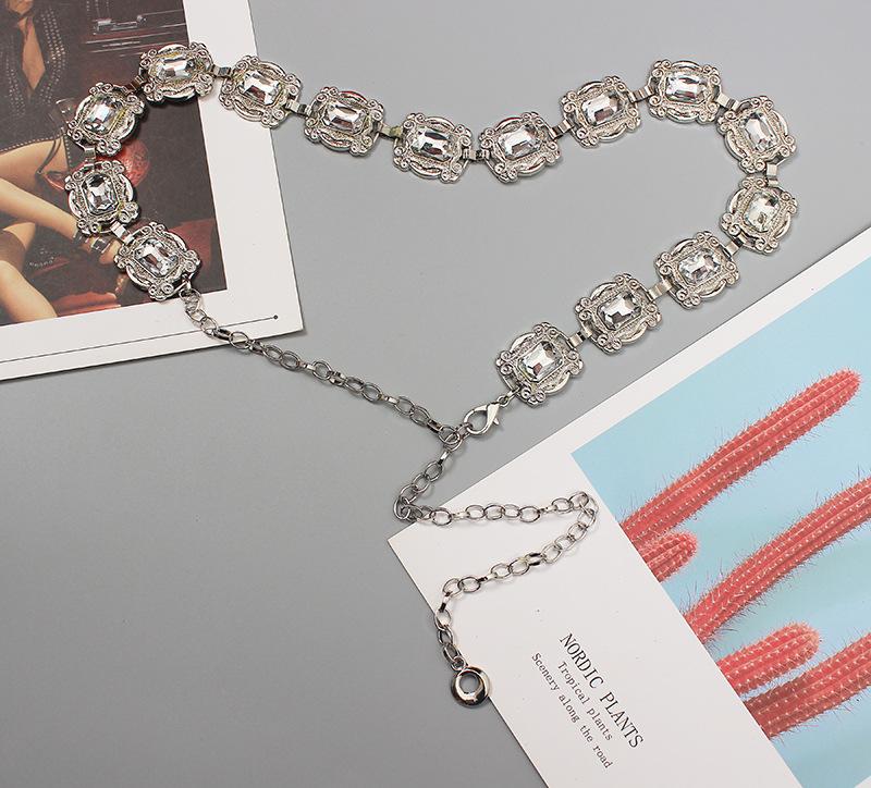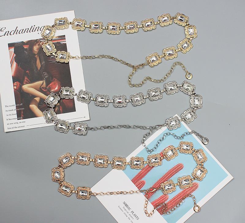 Material: Metal + StrassComprimento da parte principal da corrente da cintura 66 comprimento total 109 (ajustável) largura 3