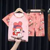 Pijama infantil masculino de verão, manga curta, fino, roupa para casa infantil, roupa infantil feminina com ar condicionado para o verão, roupa externa