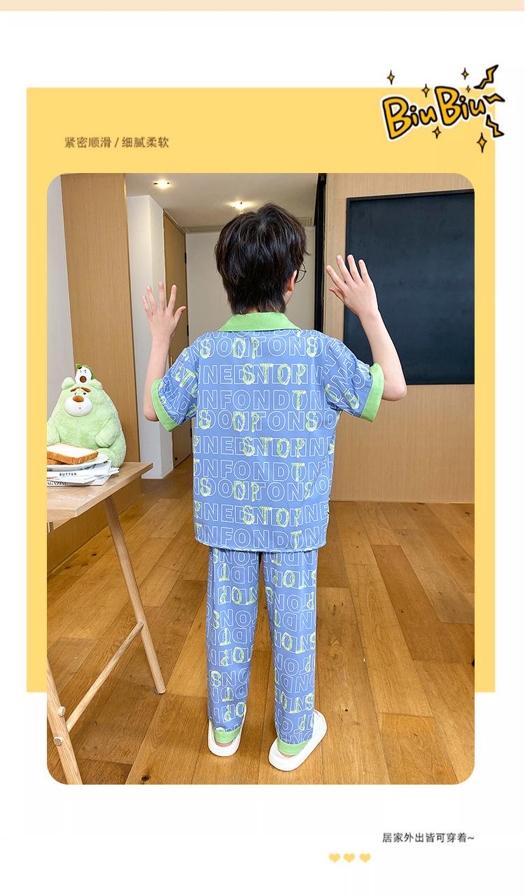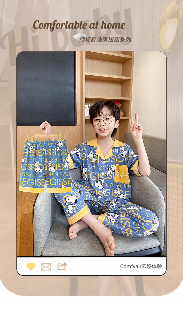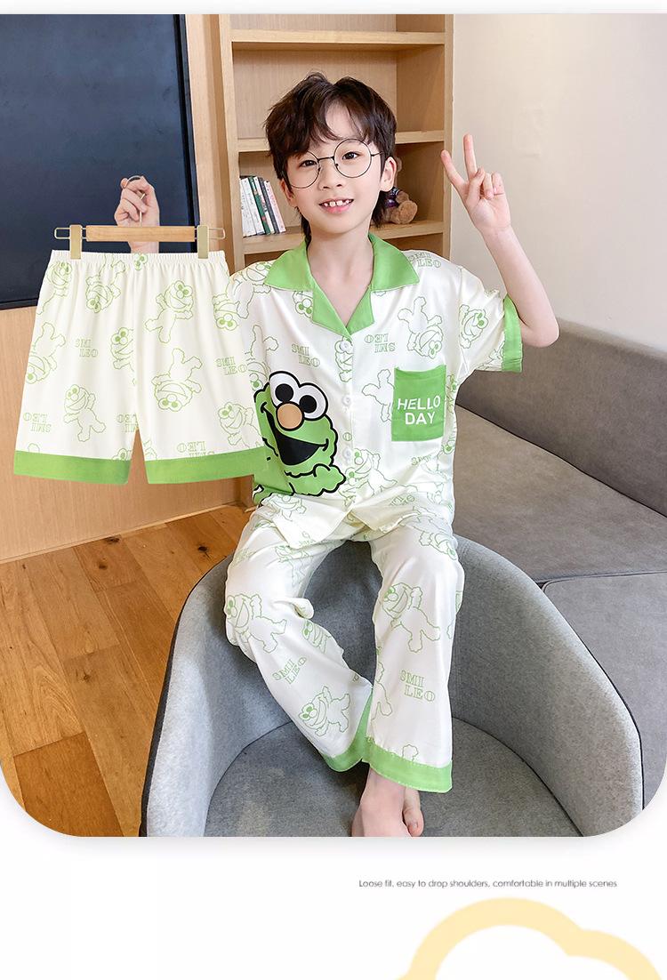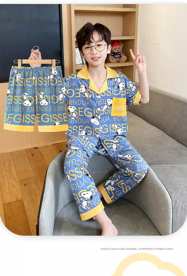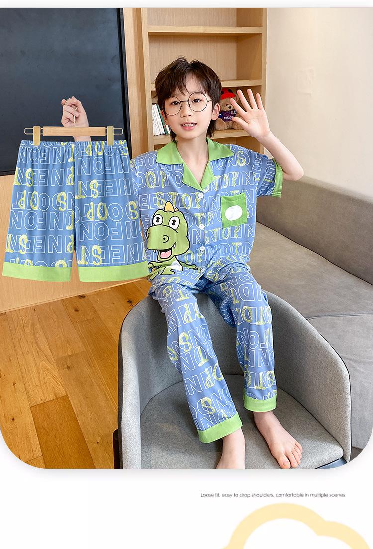 Pijama infantil de três peças, calça fina de manga curta, roupa para meninos, verão 2025