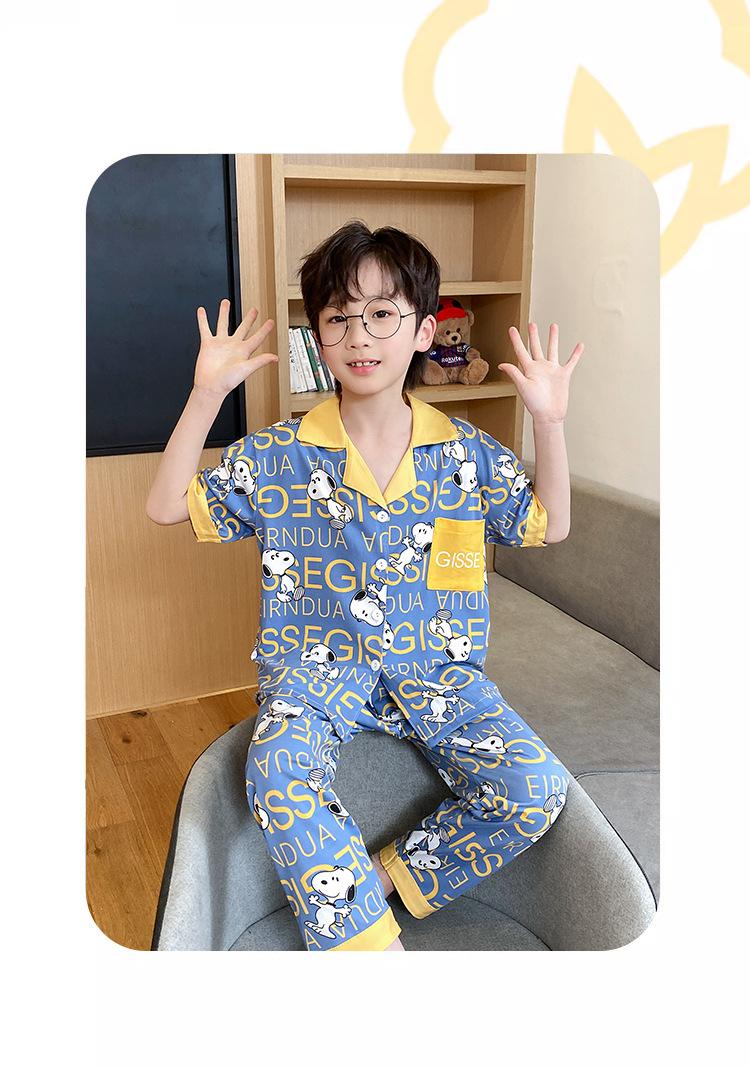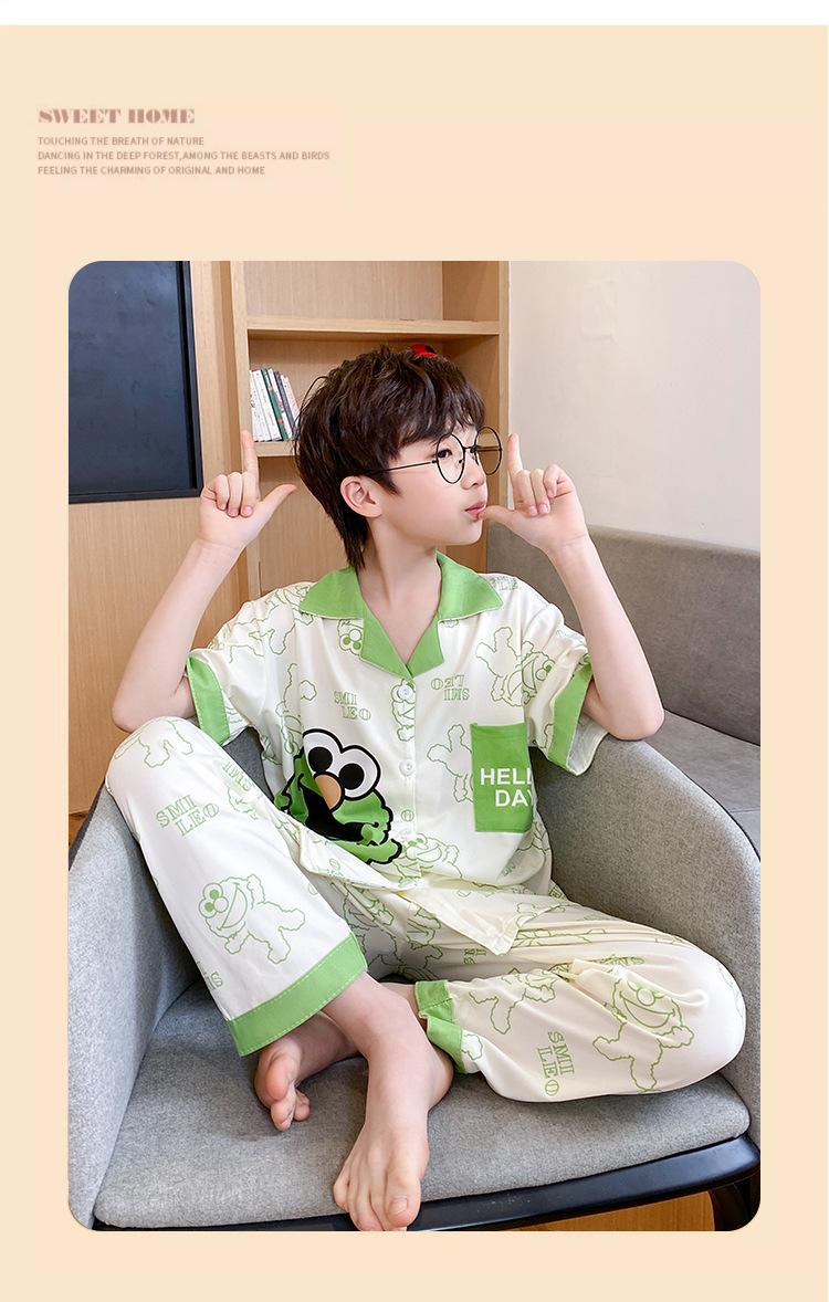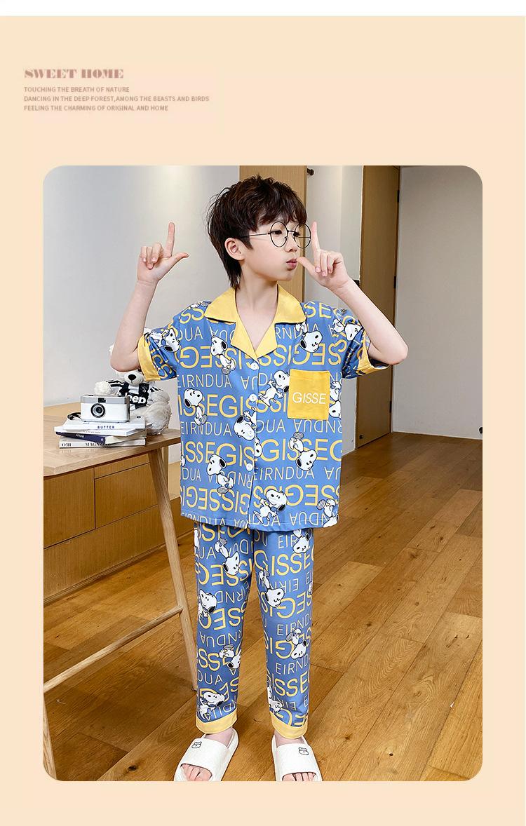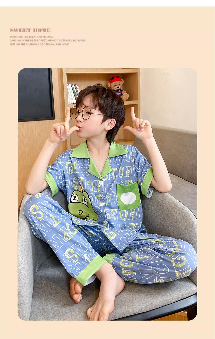 Pijama infantil de três peças, calça fina de manga curta, roupa para meninos, verão 2025