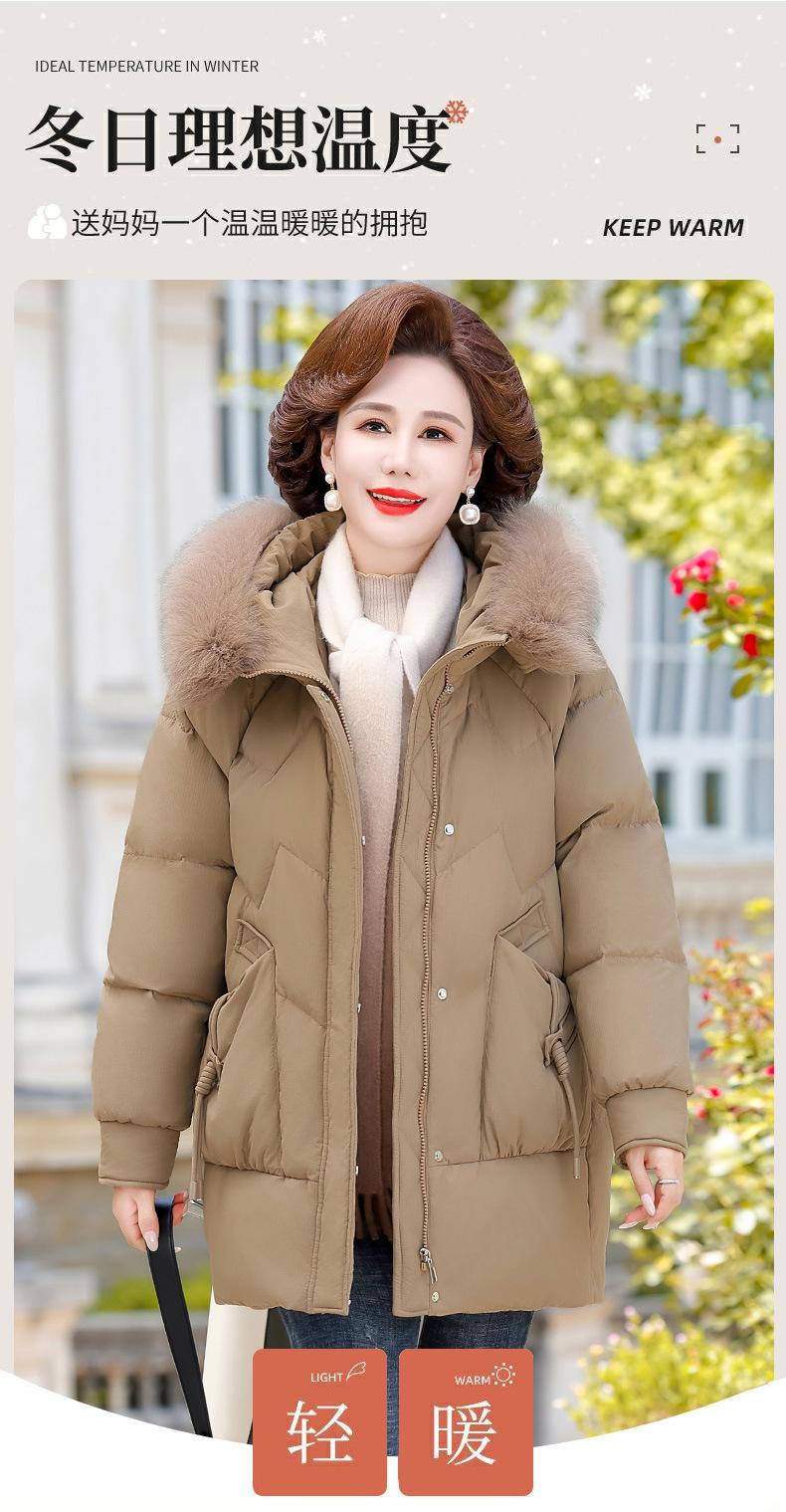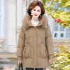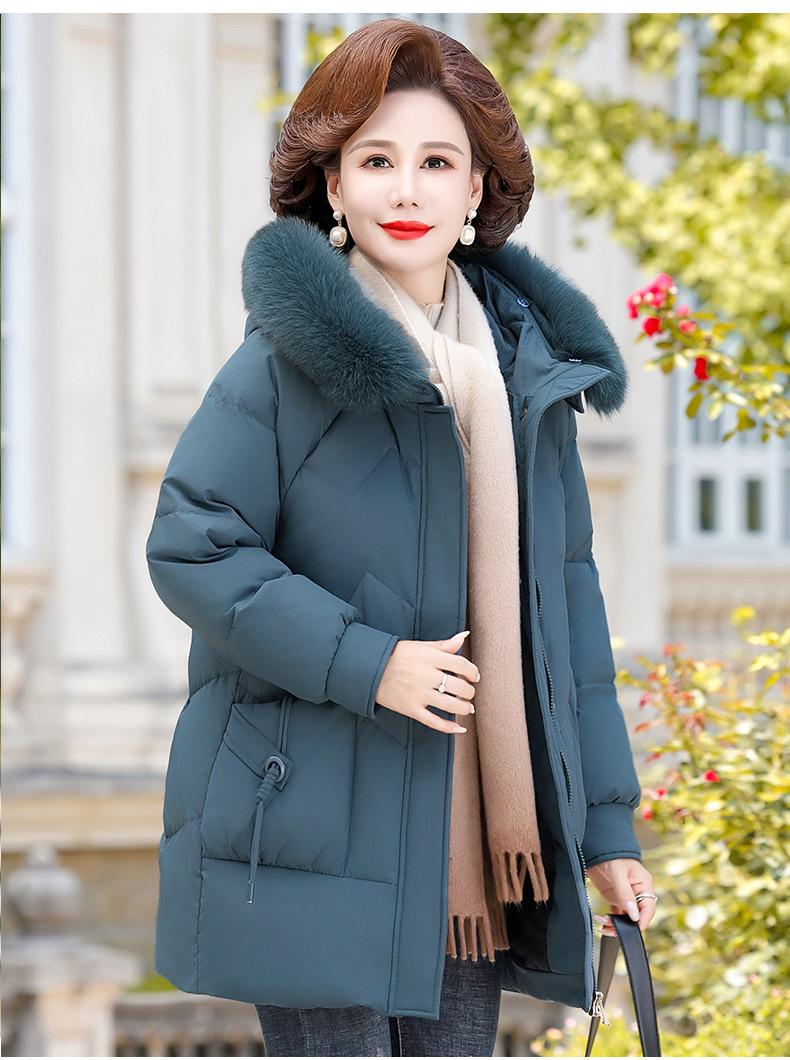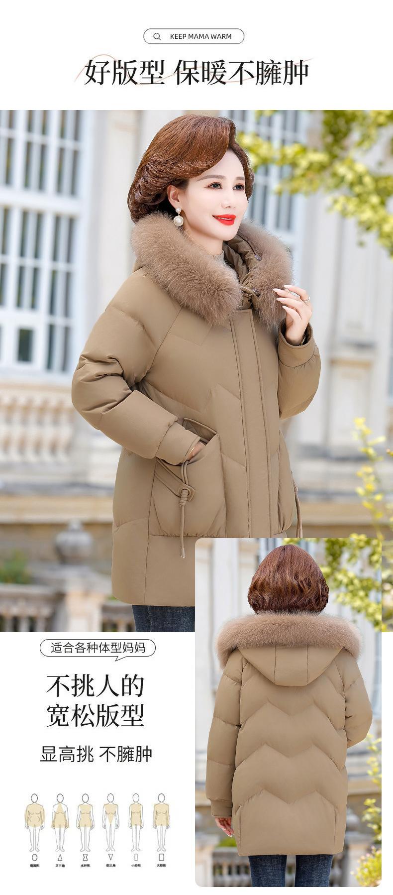 Jaqueta de Penas para Mães de Meia-Idade Feminina 2023 Novo Estilo Casual Gola de Pele de Raposa Real Comprimento Médio Inverno Roupa Exterior Espessada