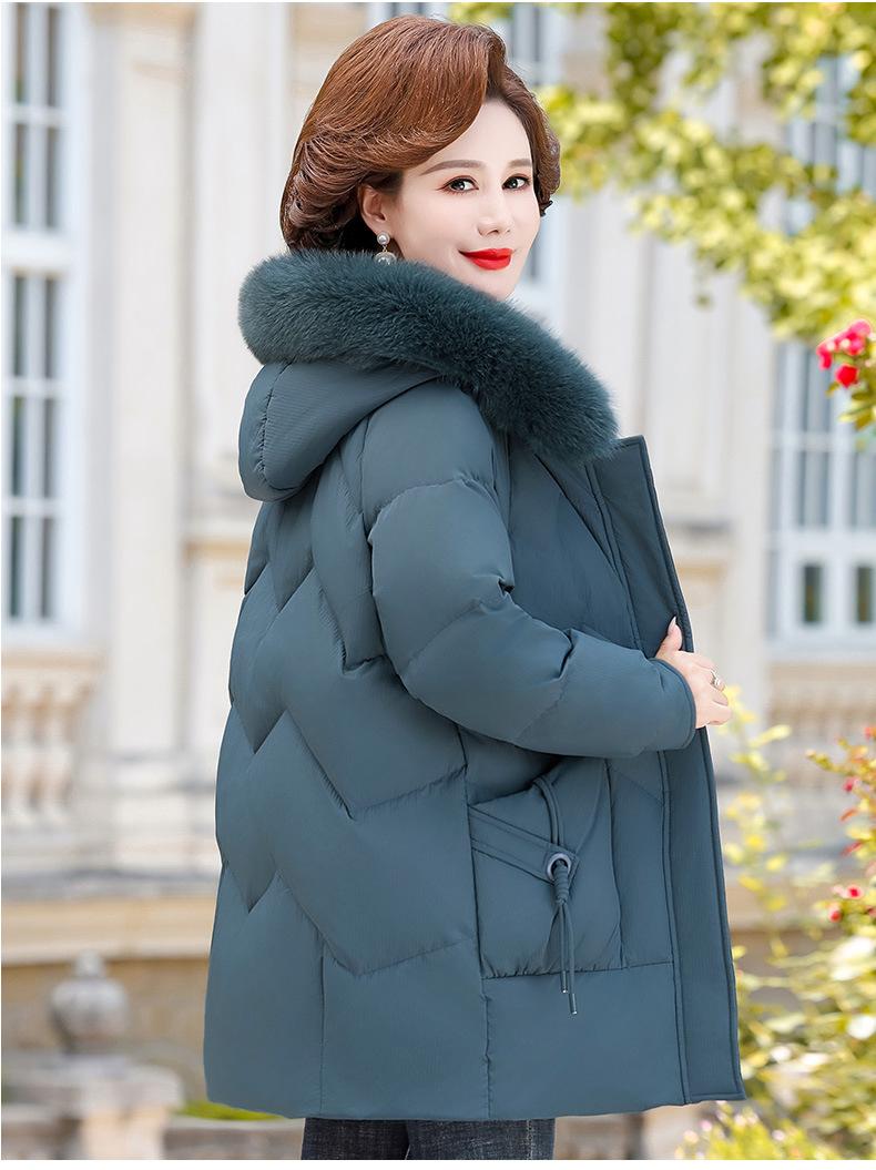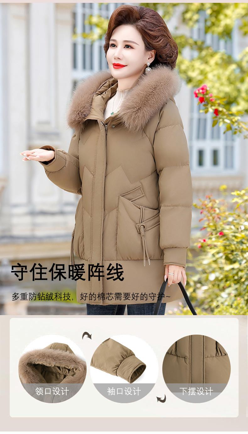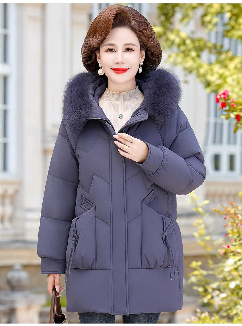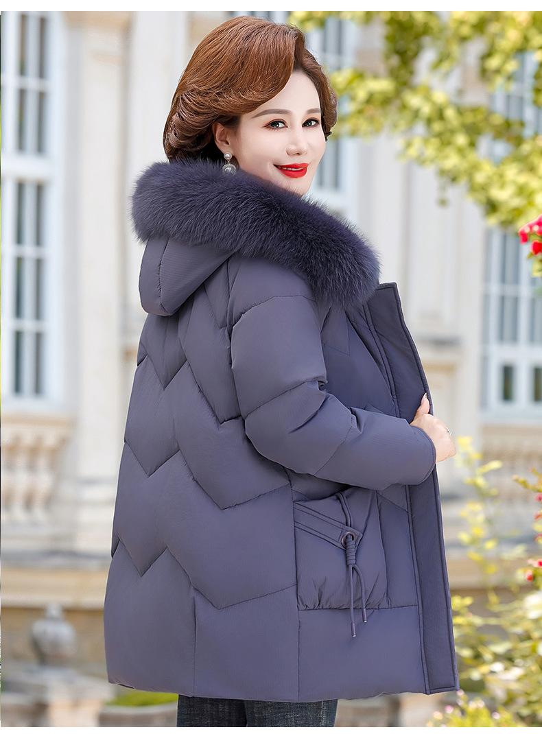 Jaqueta de Penas para Mães de Meia-Idade Feminina 2023 Novo Estilo Casual Gola de Pele de Raposa Real Comprimento Médio Inverno Roupa Exterior Espessada