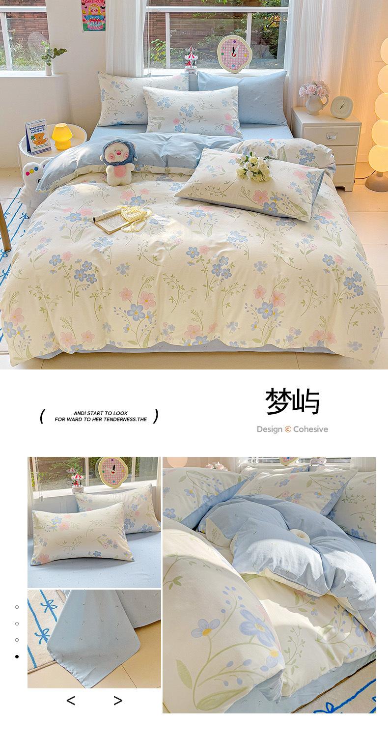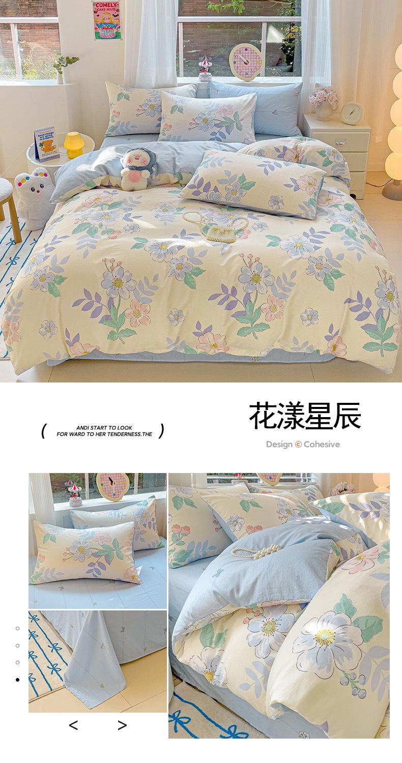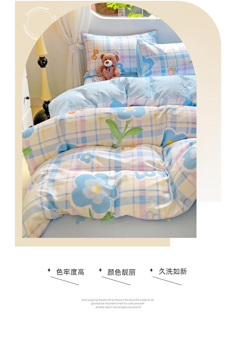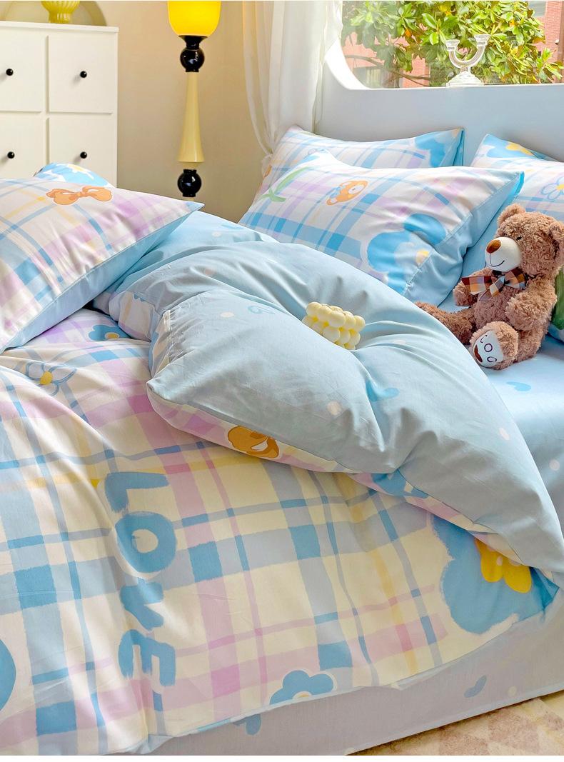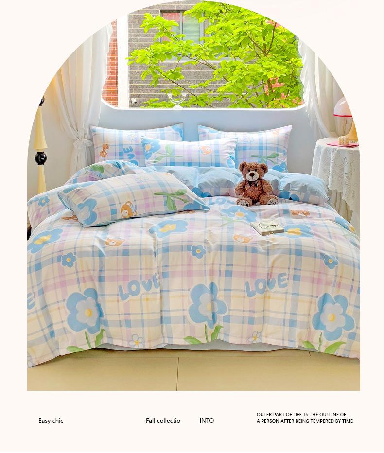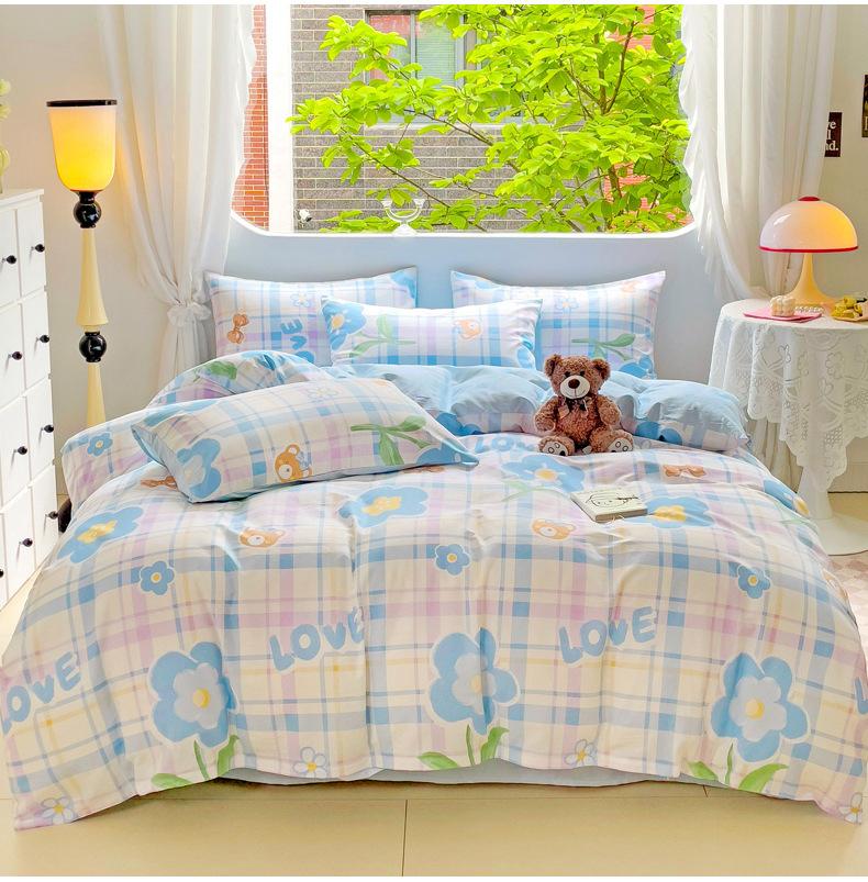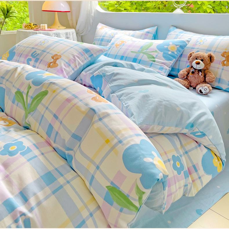 Lençol de cama de algodão simples de quatro peças, capa de edredom para dormitório estudantil, roupa de cama de algodão 100% natural e amiga da pele, de três peças