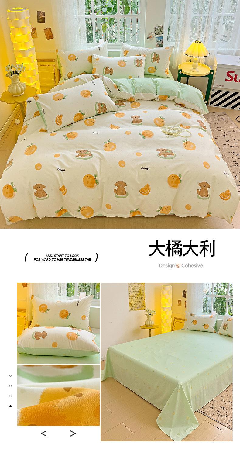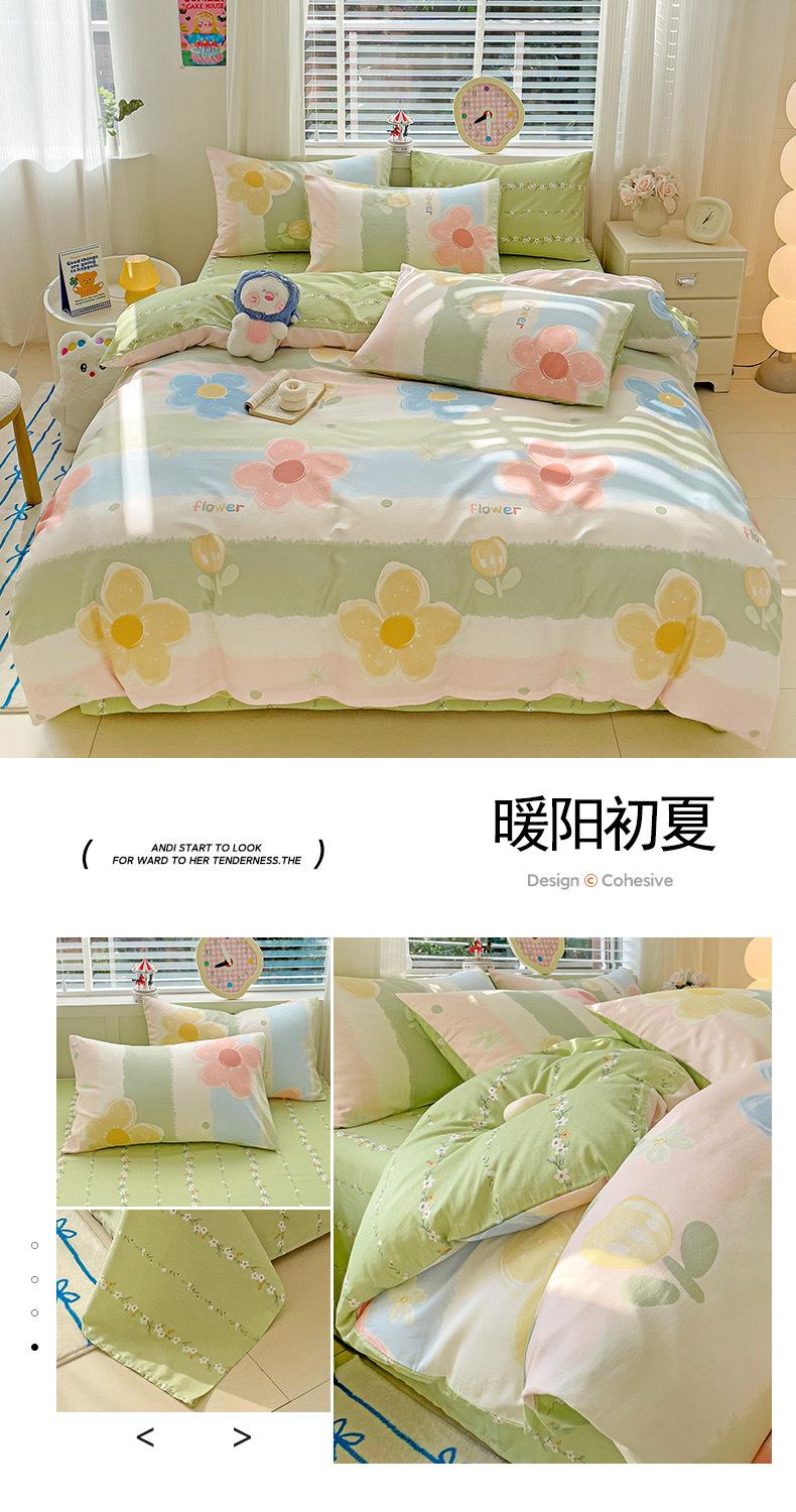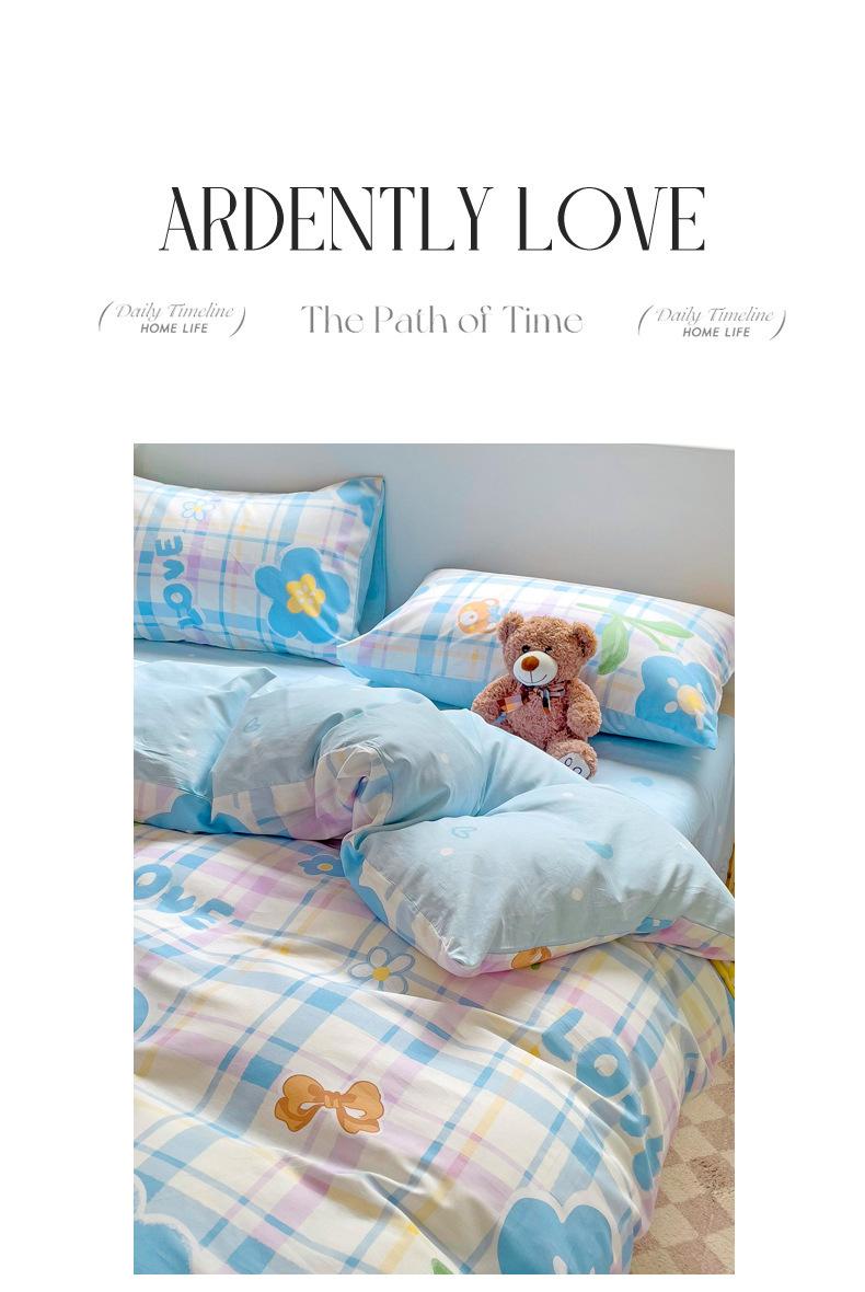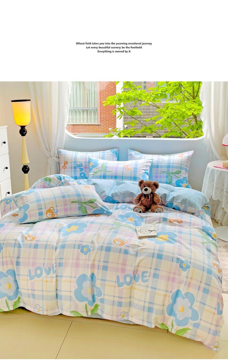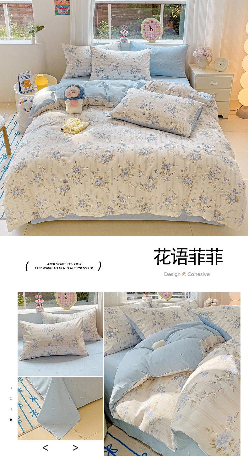 Lençol de cama de algodão simples de quatro peças, capa de edredom para dormitório estudantil, roupa de cama de algodão 100% natural e amiga da pele, de três peças