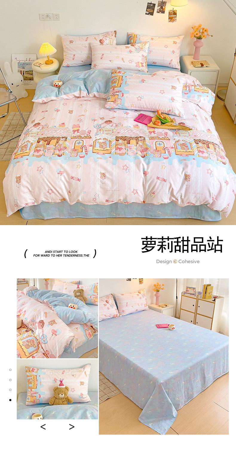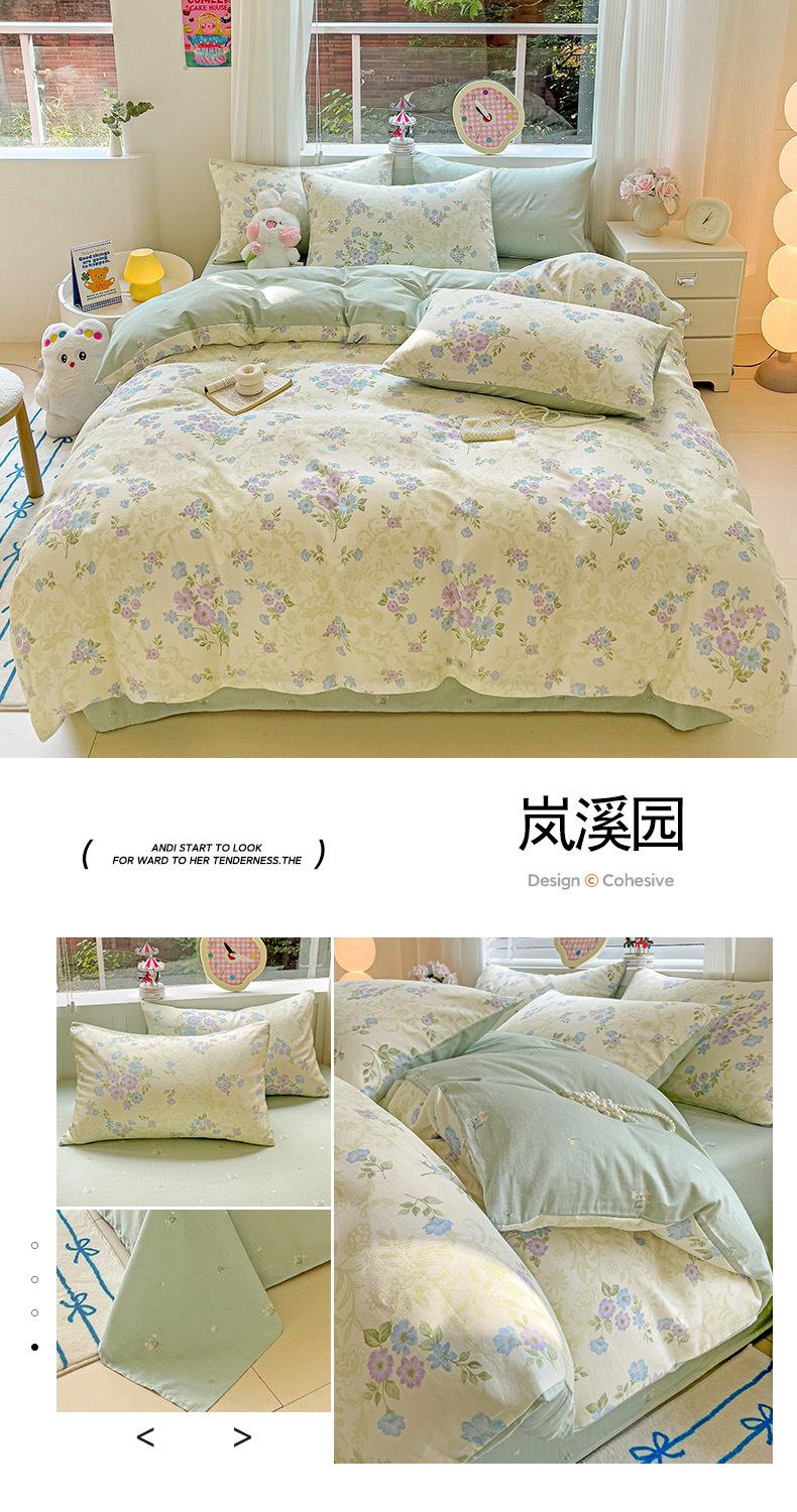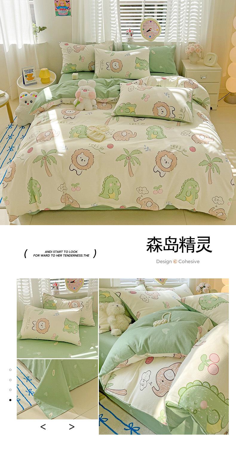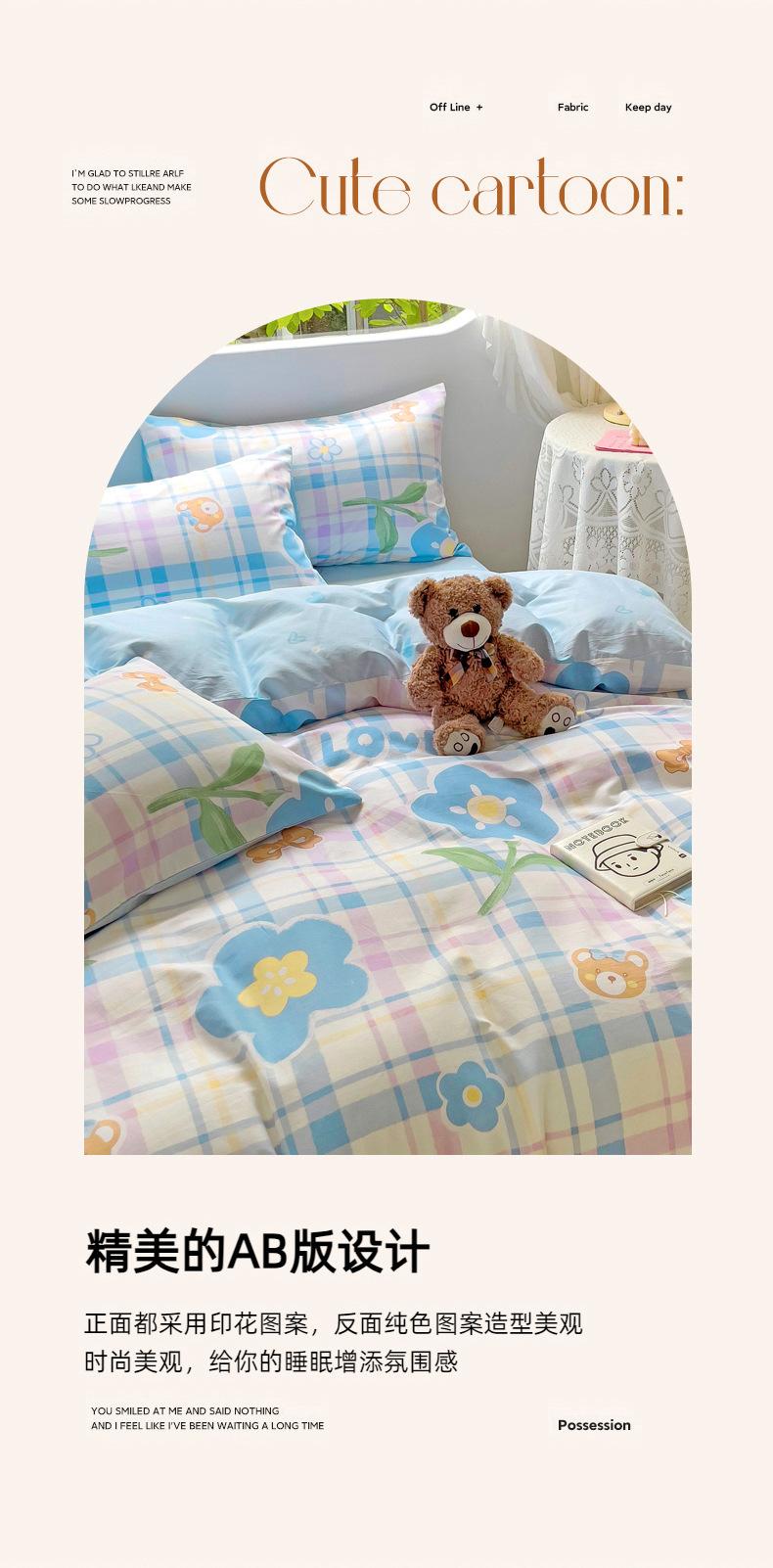 Lençol de cama de algodão simples de quatro peças, capa de edredom para dormitório estudantil, roupa de cama de algodão 100% natural e amiga da pele, de três peças