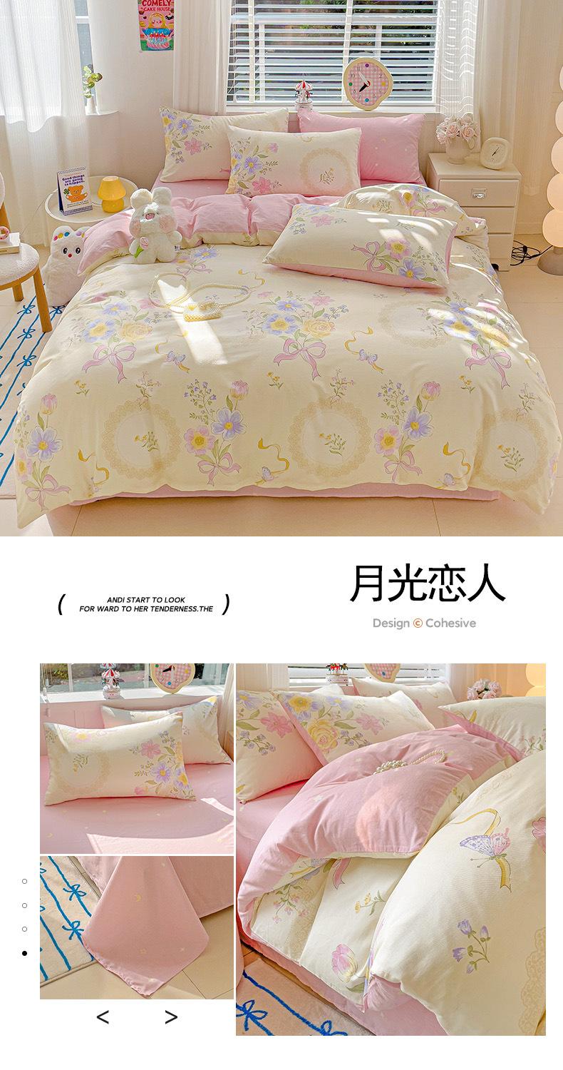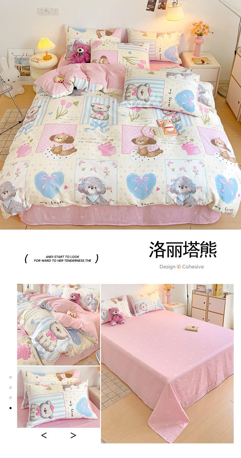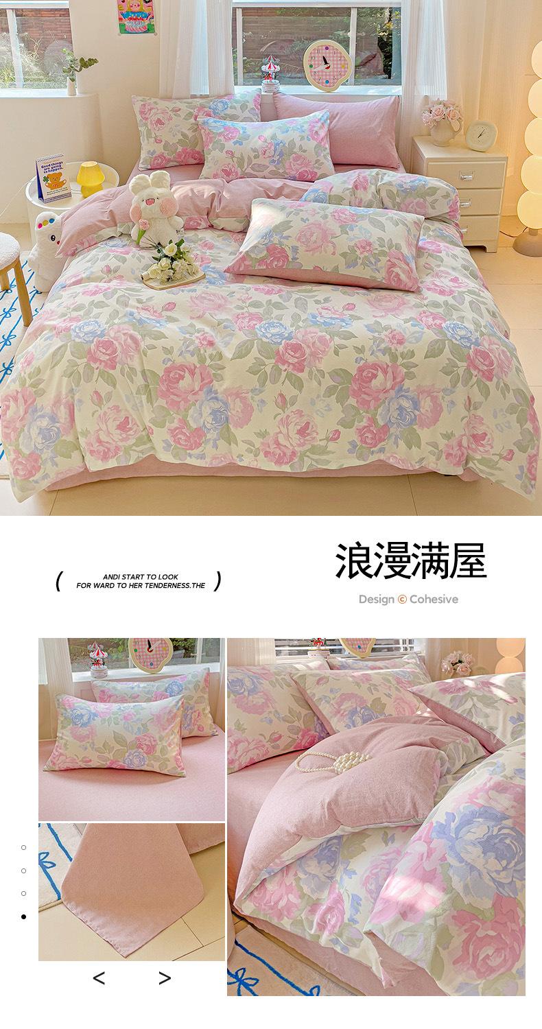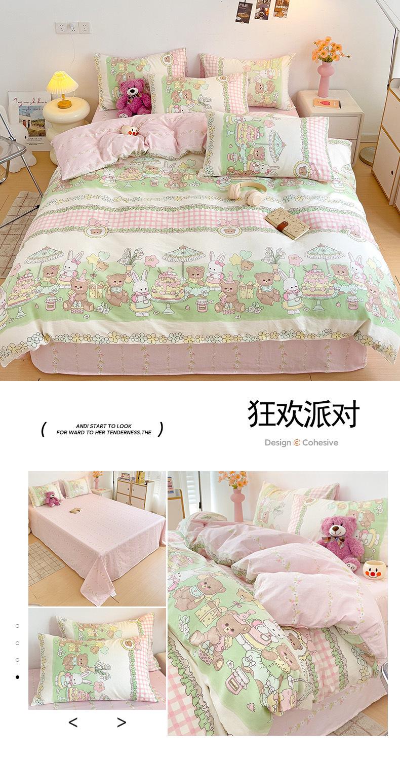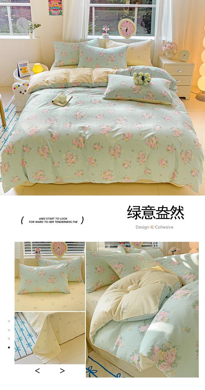 Lençol de cama de algodão simples de quatro peças, capa de edredom para dormitório estudantil, roupa de cama de algodão 100% natural e amiga da pele, de três peças