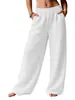 Calças Casuais de Cintura Elástica para Mulheres Primavera e Verão Amazon Roupas Femininas Europeias e Americanas Calças Longas de Linho Zen Versátil Novo para Mulheres