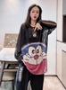 Camiseta de Manga Comprida de Malha Estilo Americano Camisa Base Blusa Feminina Top da Moda Estilo Europeu Marca Tendência Camiseta Estampada de Desenho Antigo