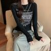 Estação Europeia Camiseta de Manga Longa Feminina Carta Top Linha Base Camisa 2025 Primavera e Outono Nova Moda Europeia Top T
