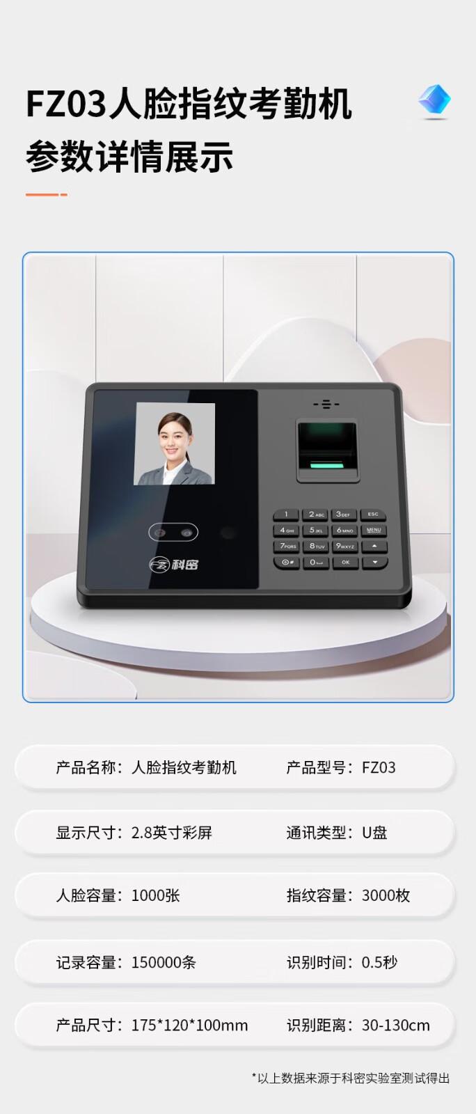 Komi FZ03 comes standard with 1000 faces 3000 fingerprints 150k record