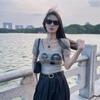 Moda americana Top de manga curta Preto com estampa de letras Camiseta curta Gola redonda Sexy Hot Girl Verão Novas roupas femininas