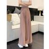 2025 Outono Novo Estilo Japonês Simples Patchwork Renda Bainha Design Calças de Perna Larga Emagrecedoras de Cintura Alta para Mulheres Plus Size
