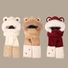 Chapéu de urso cachecol integrado feminino outono e inverno ciclismo à prova de frio cachecol quente proteção para os ouvidos luvas de pelúcia fofas máscara