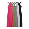 Vestido sexy de veludo vermelho sling feminino 2025 estilo europeu e americano nova cor sólida casual saia com decote em V