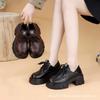 2024 Couro Genuíno Moda Novas Botas de Neve Antiderrapantes Versáteis Sapatos Casuais de Pão Aumentou Sola Grossa Sapatos Furry Slip-On