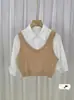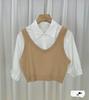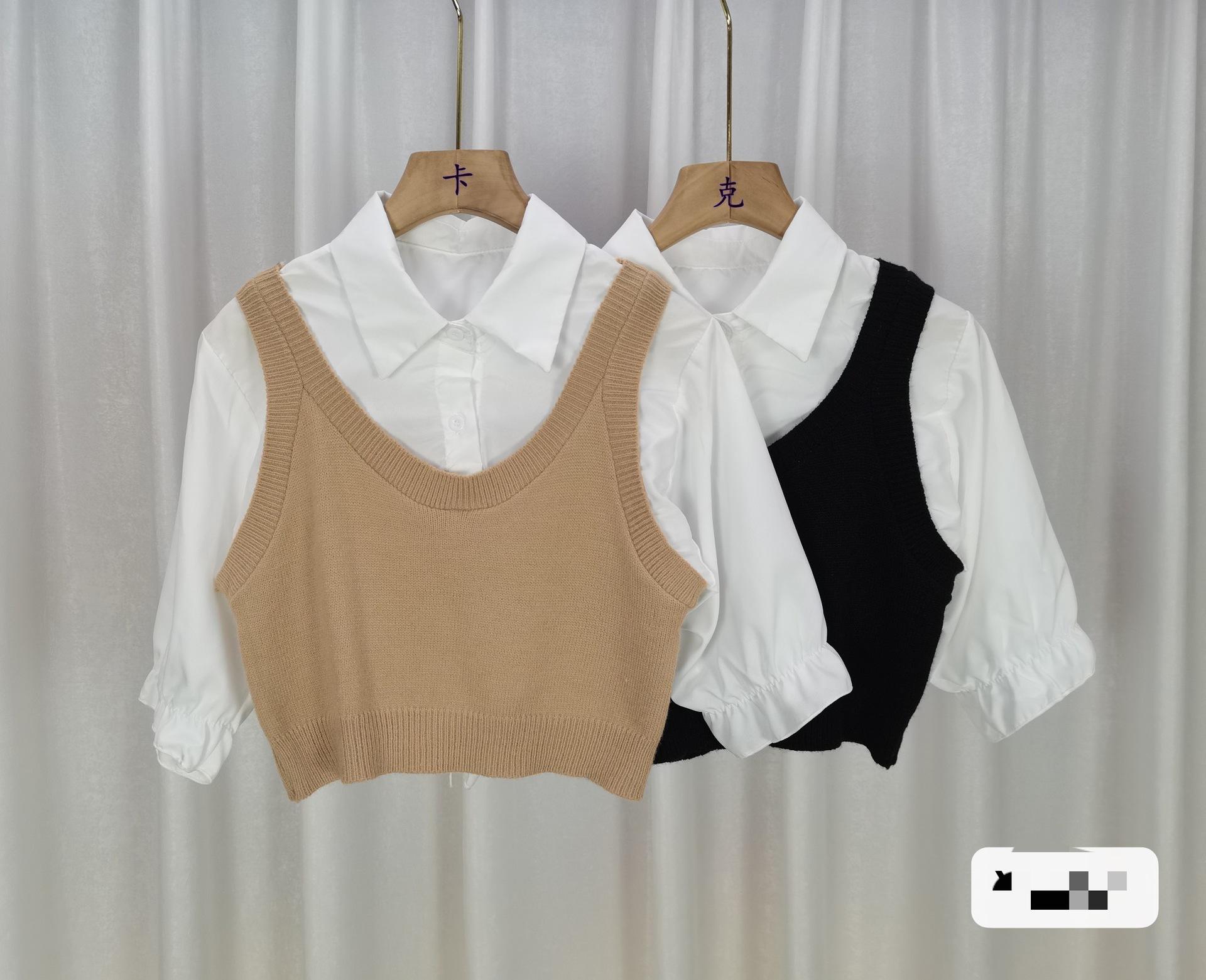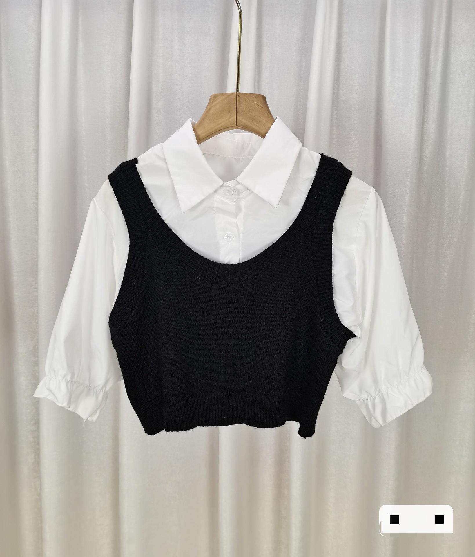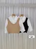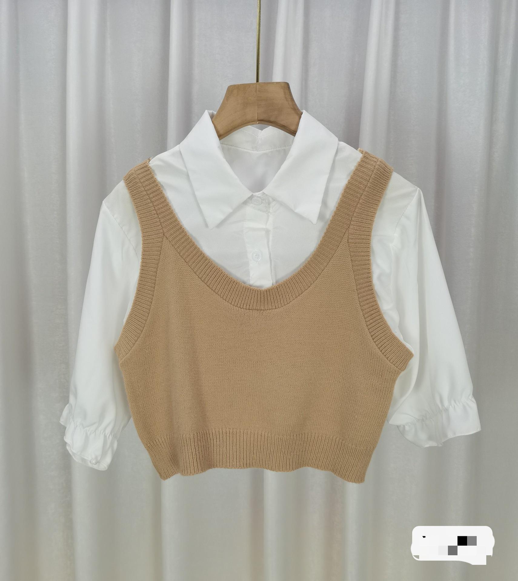 Falso colete de malha de duas peças costura curta camisa de manga comprida feminina 2024 outono nova camisa base
