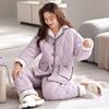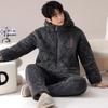 Pijama masculino inverno lã engrossada lã coral três camadas algodão acolchoado jaqueta com capuz zíper flanela roupas para casa terno