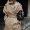 Casaco longo casual solto com capuz estilo coreano feminino com forro 2023 primavera e outono cáqui estilo europeu elegante casaco
