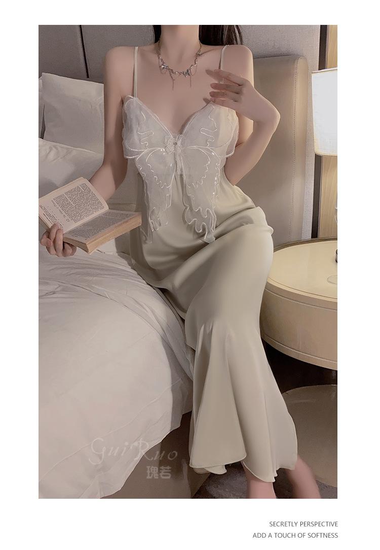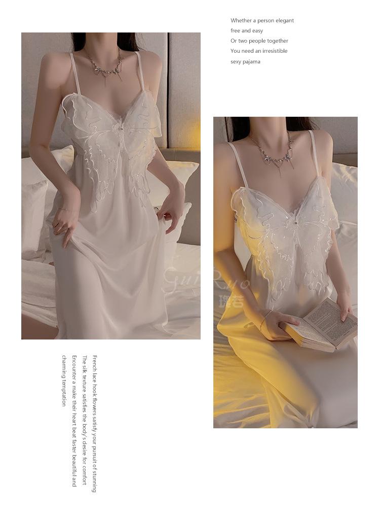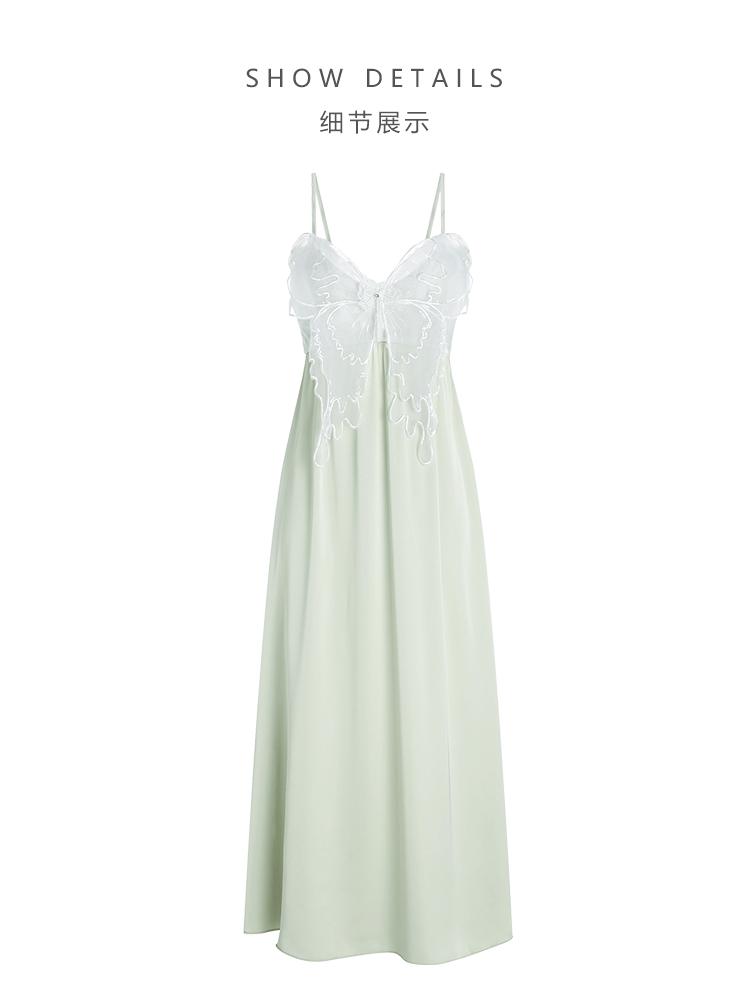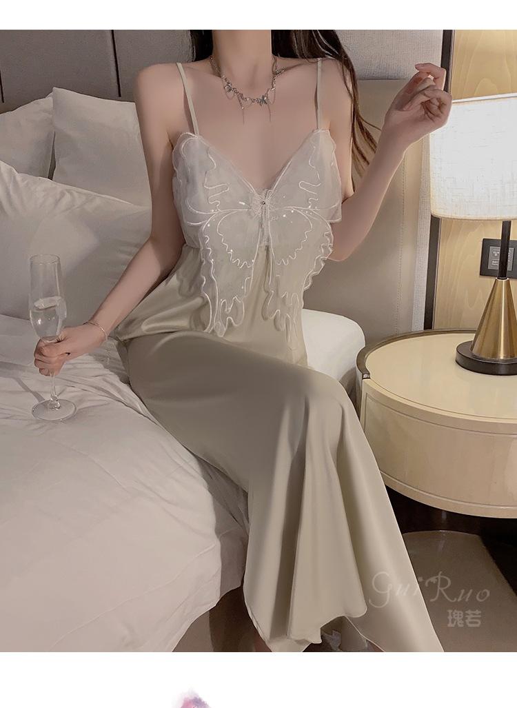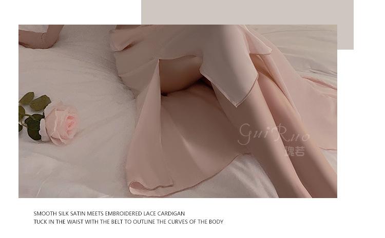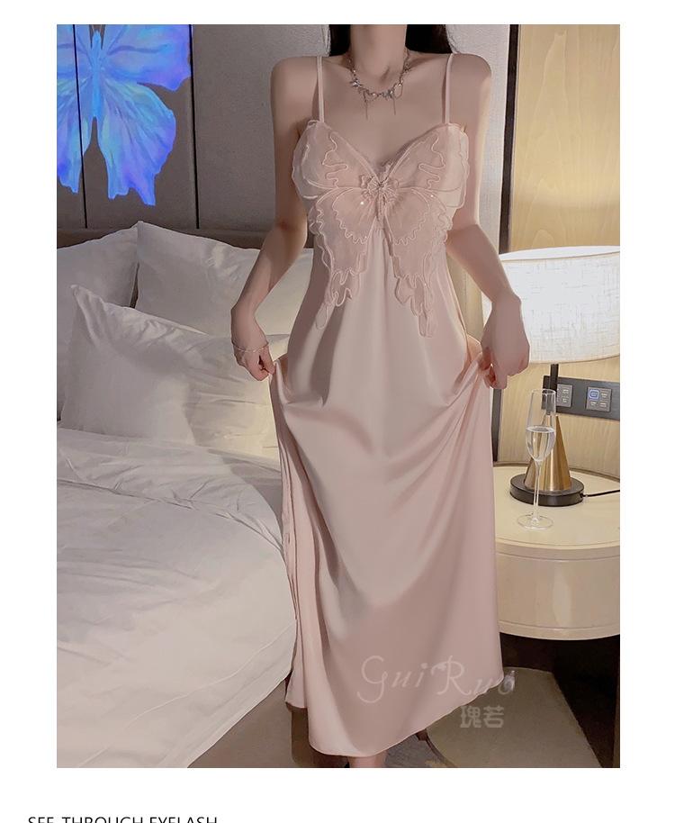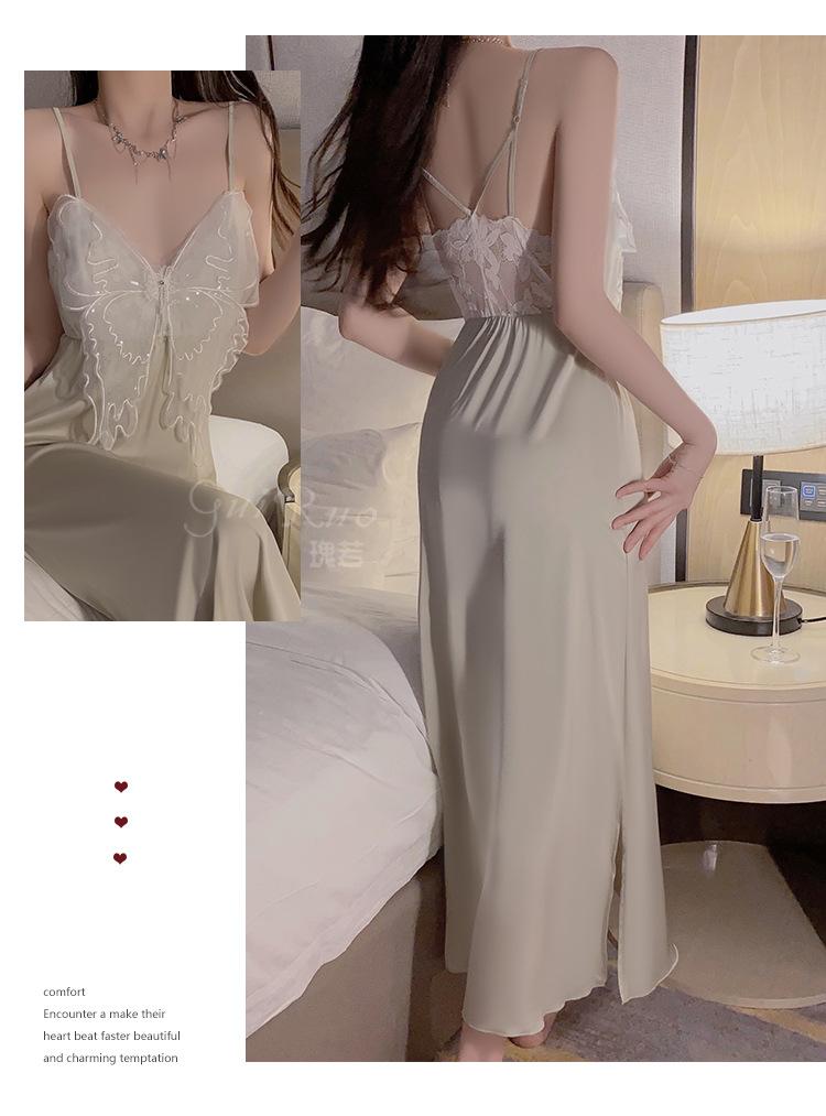 Rosa se cetim renda mais peito almofada sexy pequena fenda flor borboleta longa roupa interior casa vestido camisola P3963