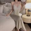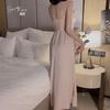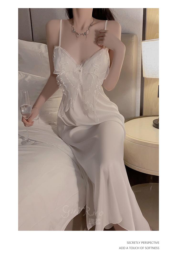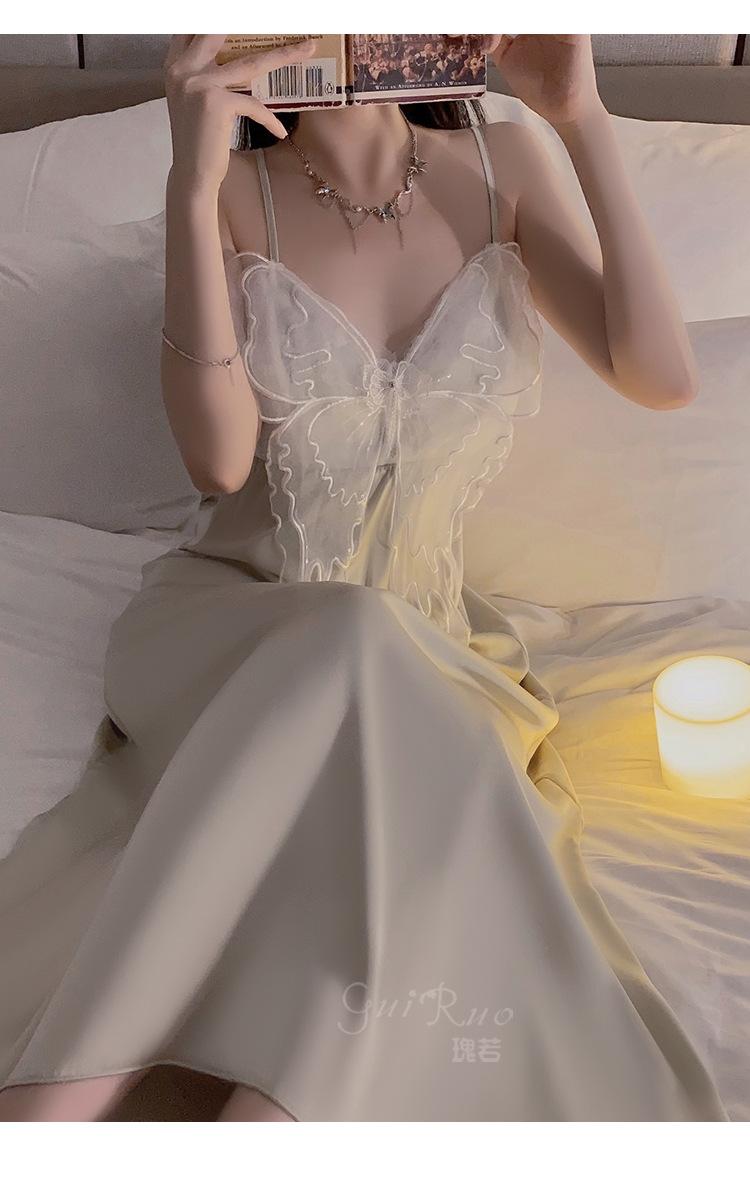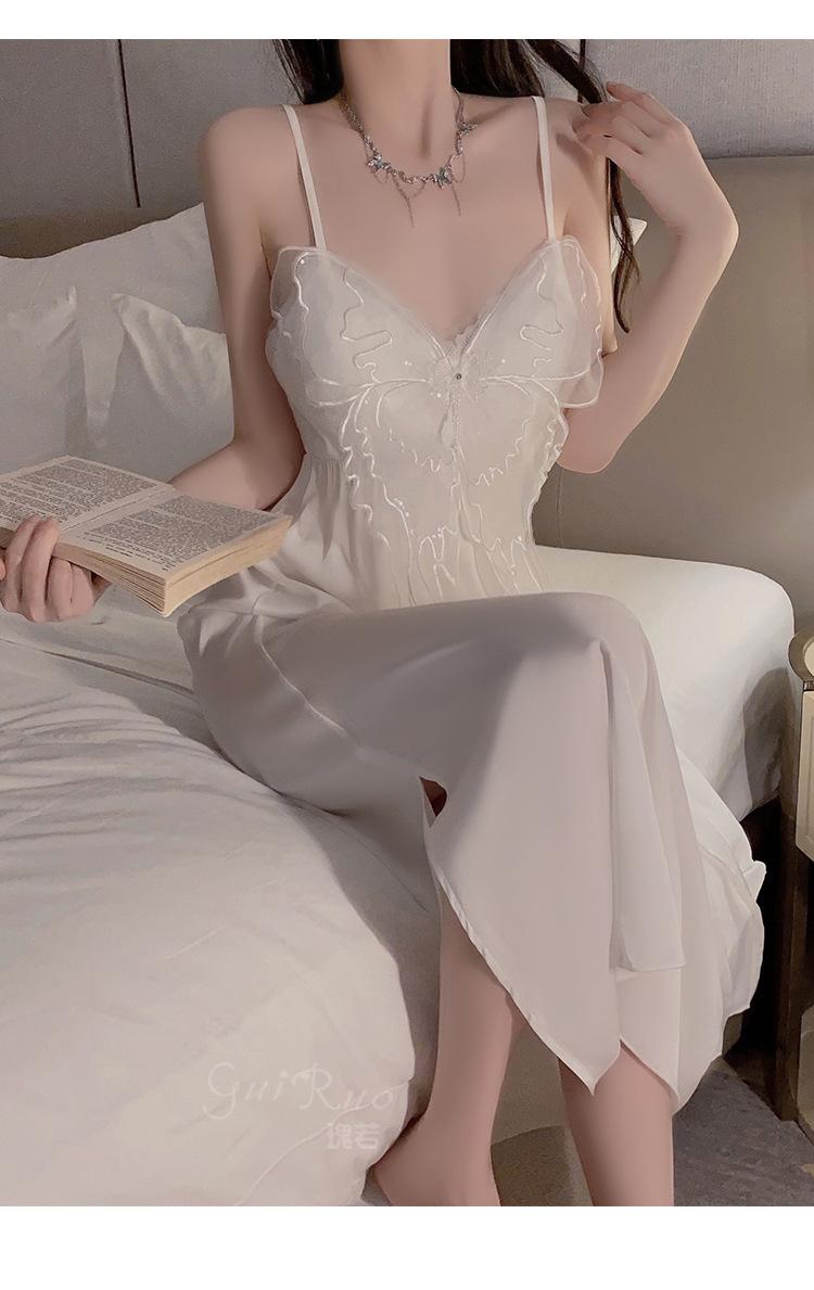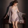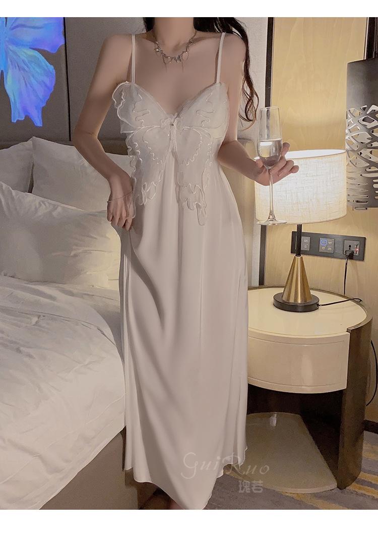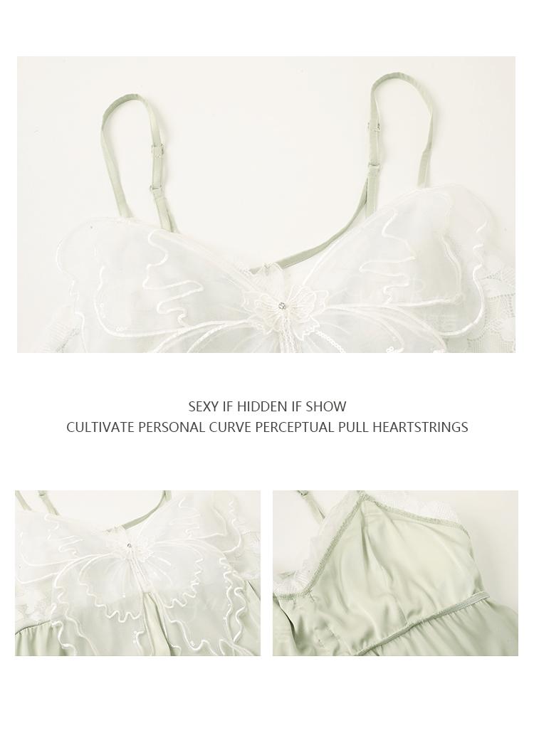Rosa se cetim renda mais peito almofada sexy pequena fenda flor borboleta longa roupa interior casa vestido camisola P3963