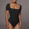 Macacão Body Sem Mangas Justo de Alta Elasticidade Camada Dupla Europeu e Americano Transfronteiriço Decote Redondo em T Amigável à Pele