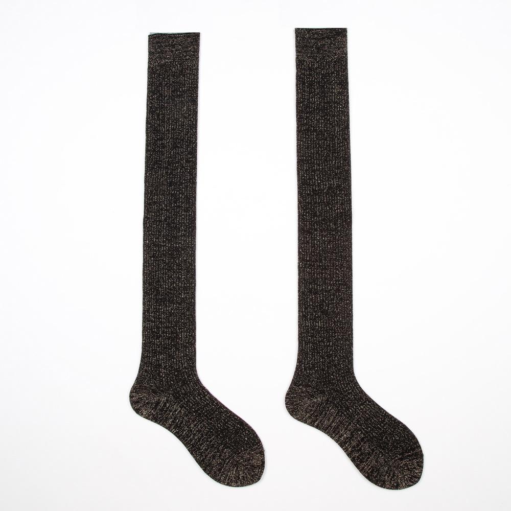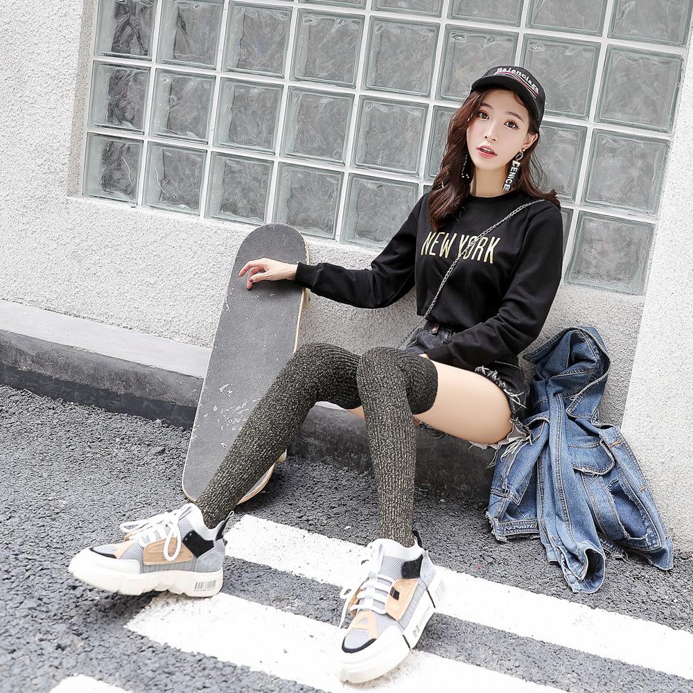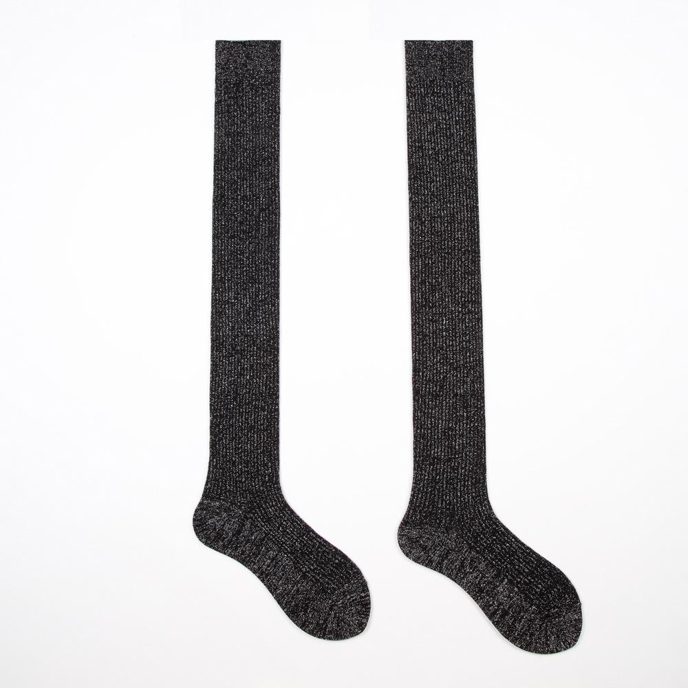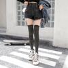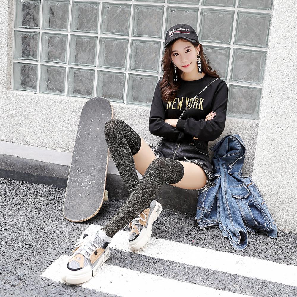 3032 Novas meias femininas de seda prateada de cor sólida, estilo universitário japonês, acima do joelho, meias antiderrapantes com estrelas do mesmo estilo