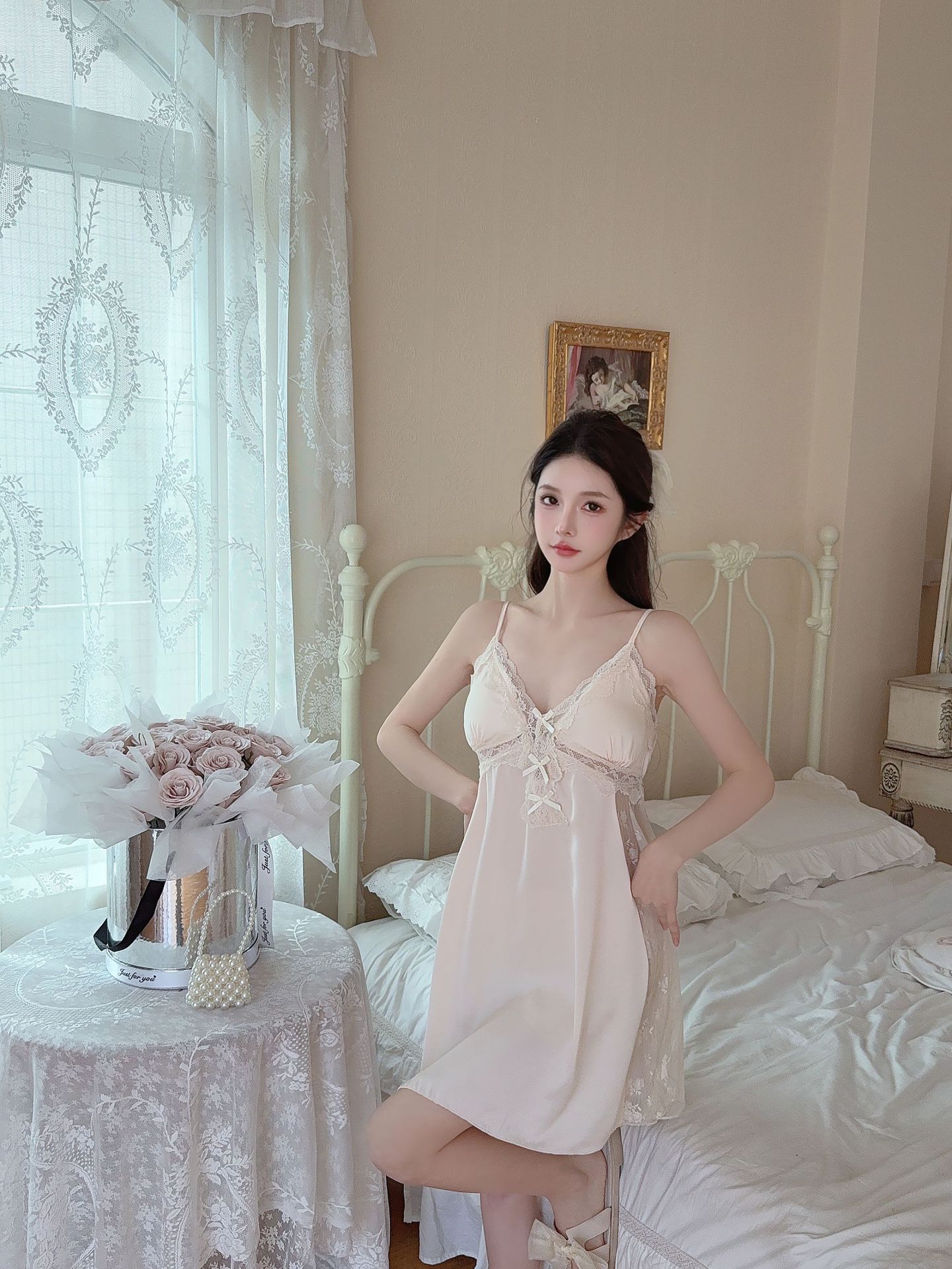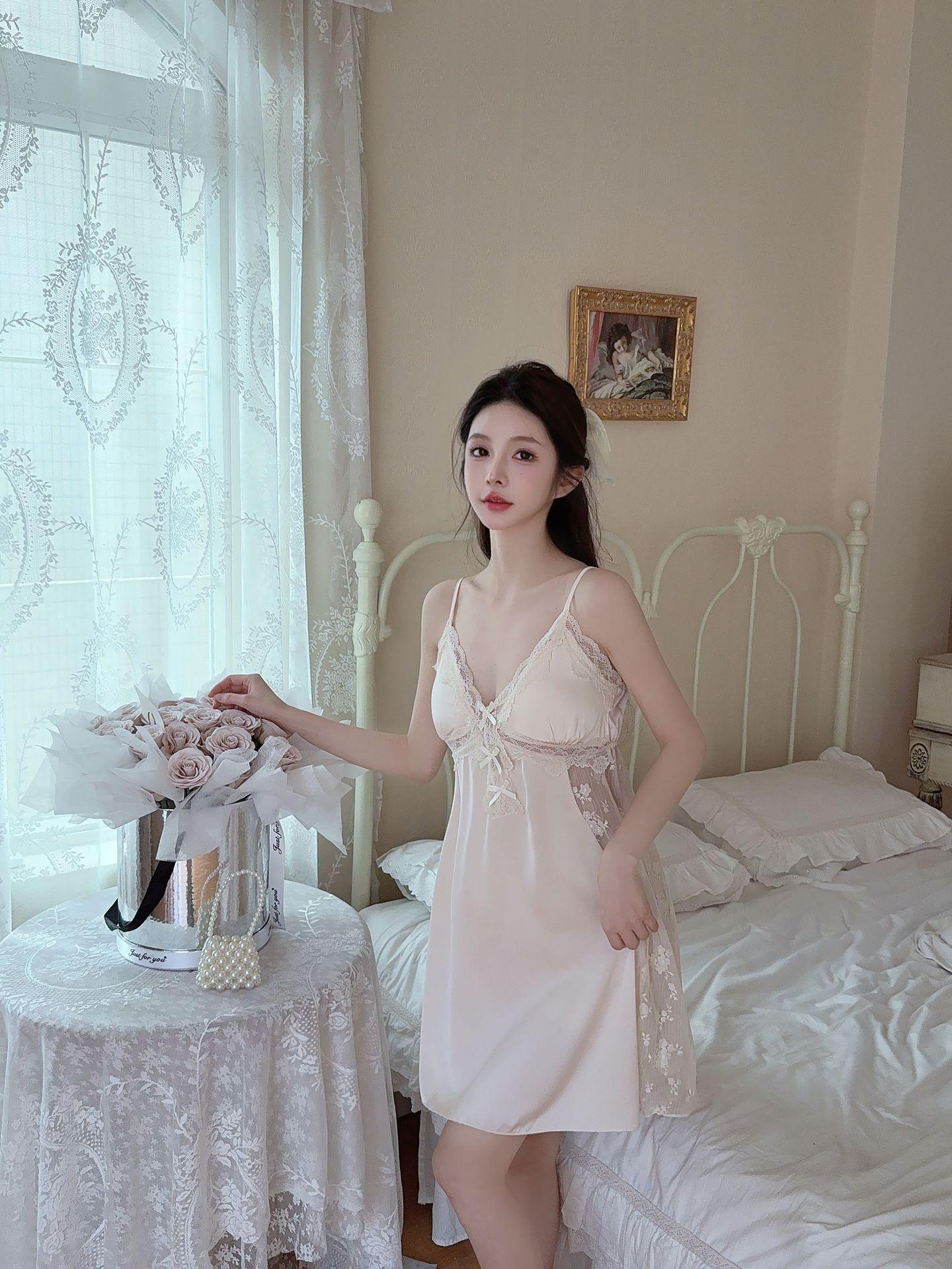 Ice Silk Verão Nova Camisola Feminina Sexy Pura Doce Estilo Princesa Fina Sling Pijama Verão Roupas de Casa