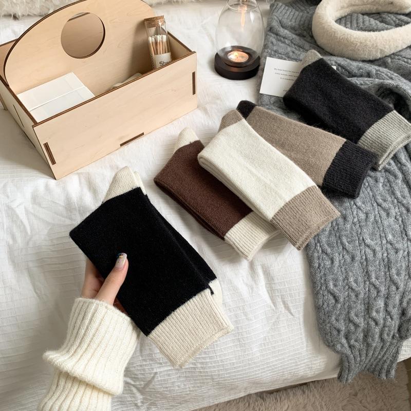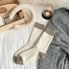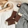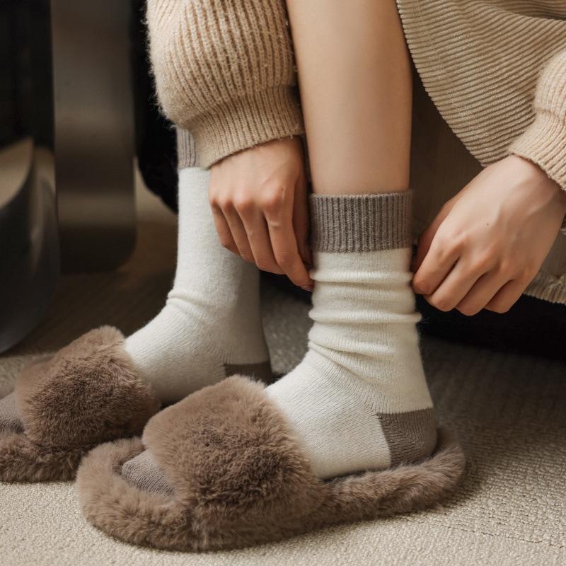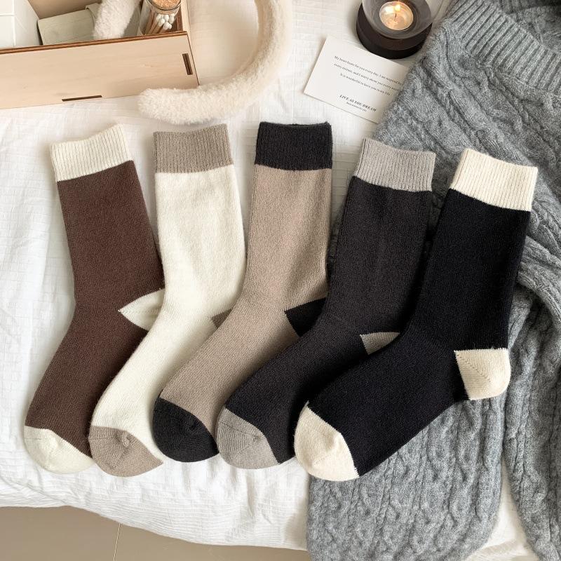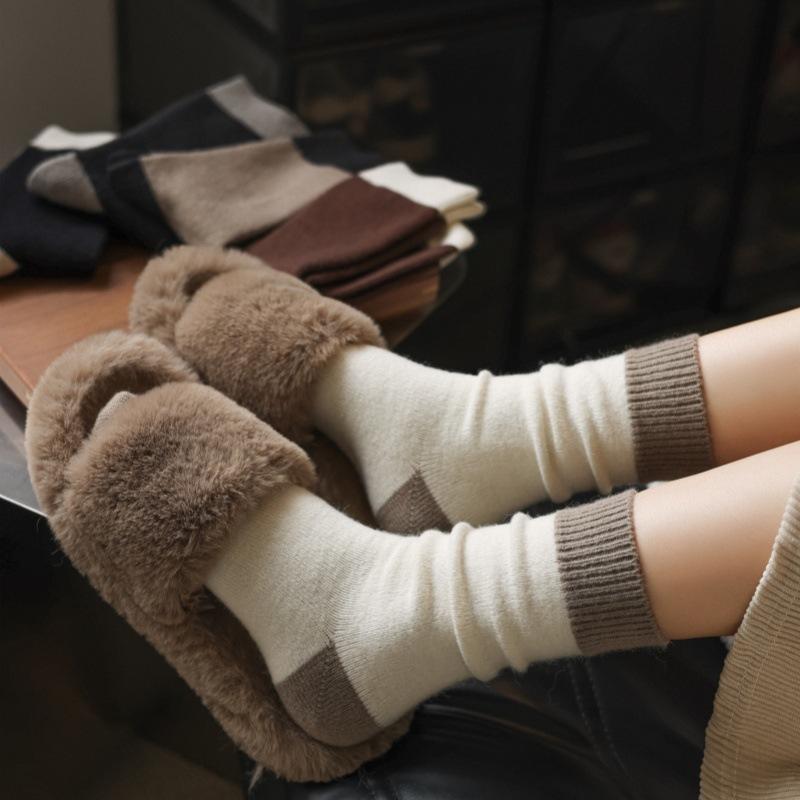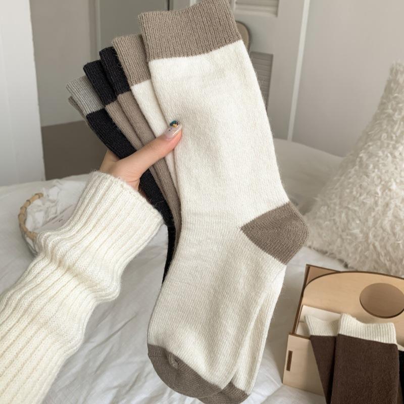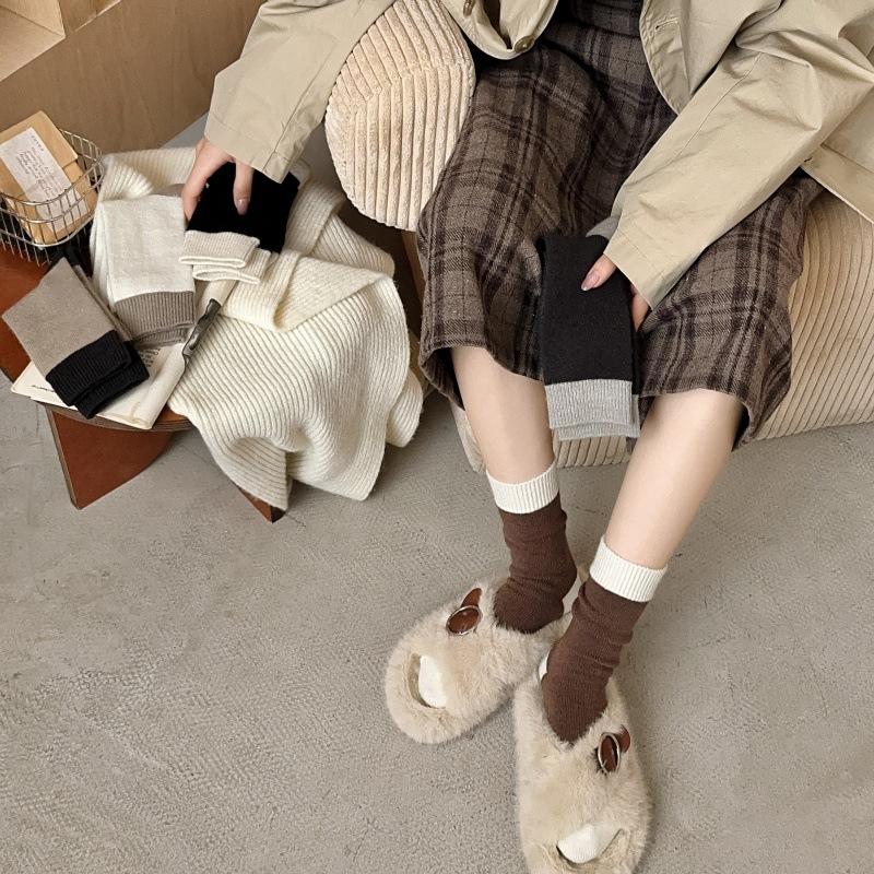 Meias Quentes de Outono e Inverno para Mulheres, Meias Femininas de Cano Médio em Caxemira Imitada com Combinação de Cores Cinza Fumaça, Modernas, Simples e Versáteis Meias Felpudas
