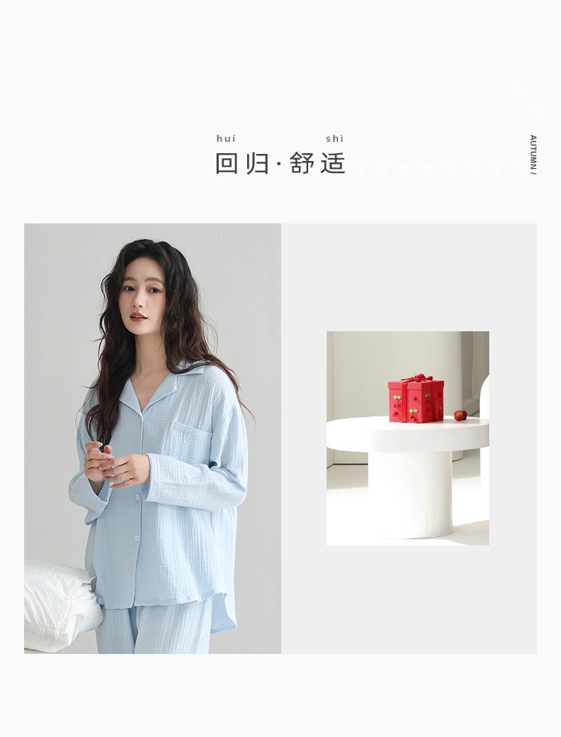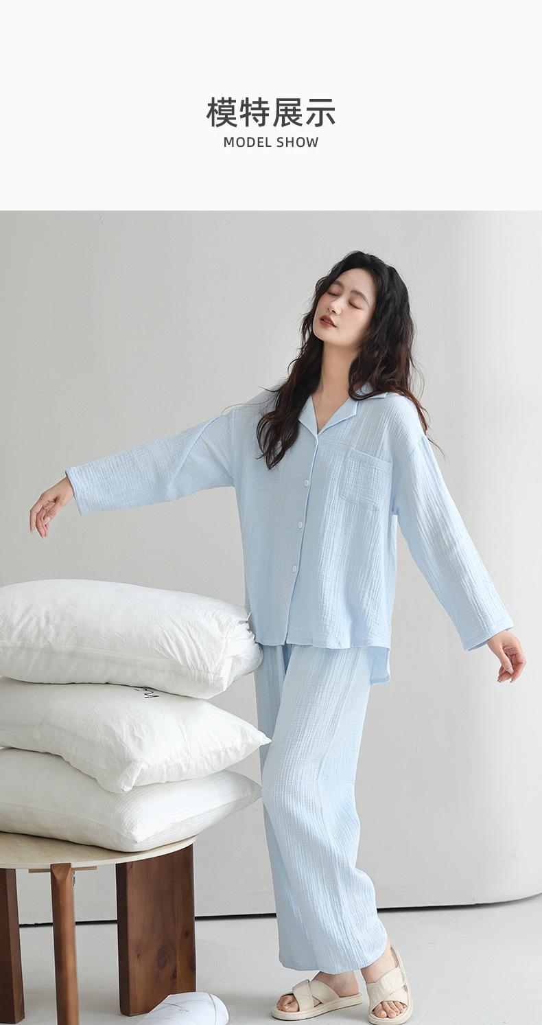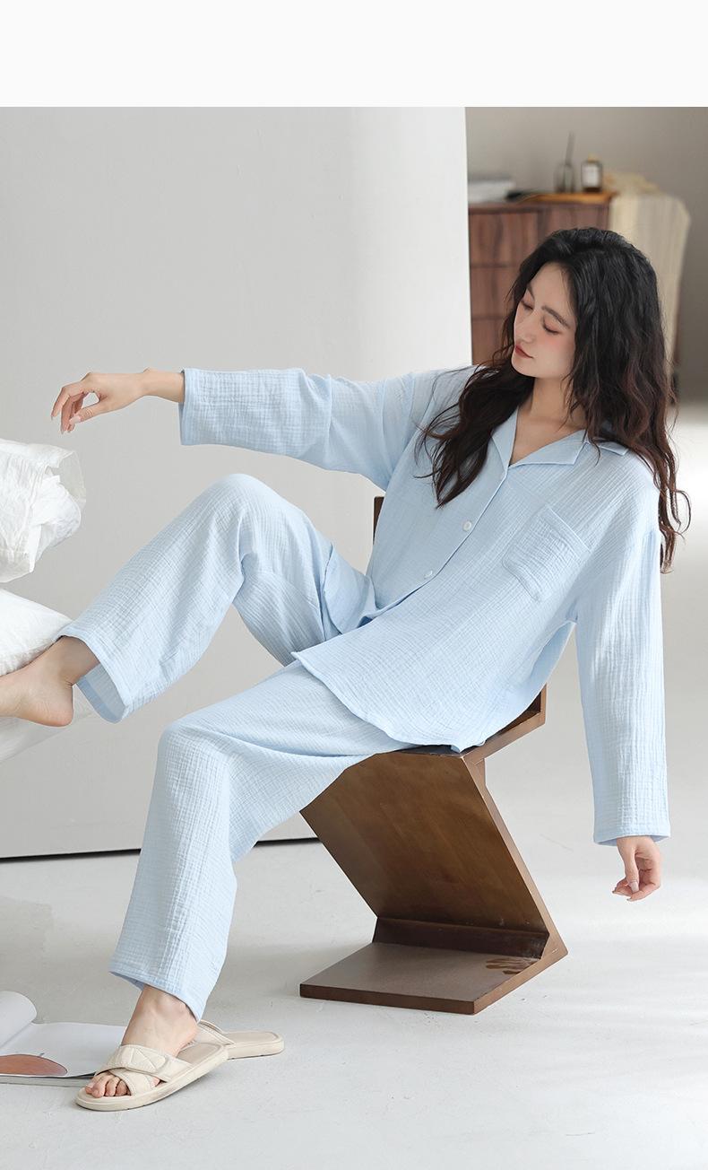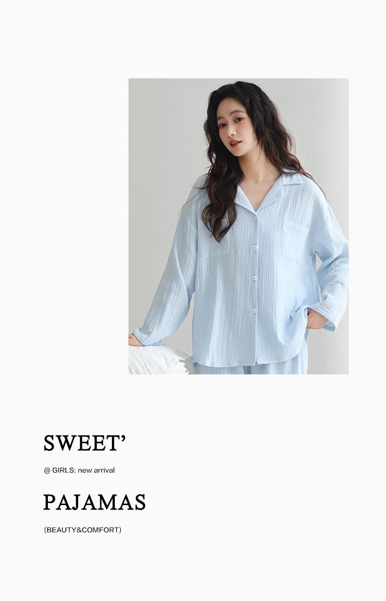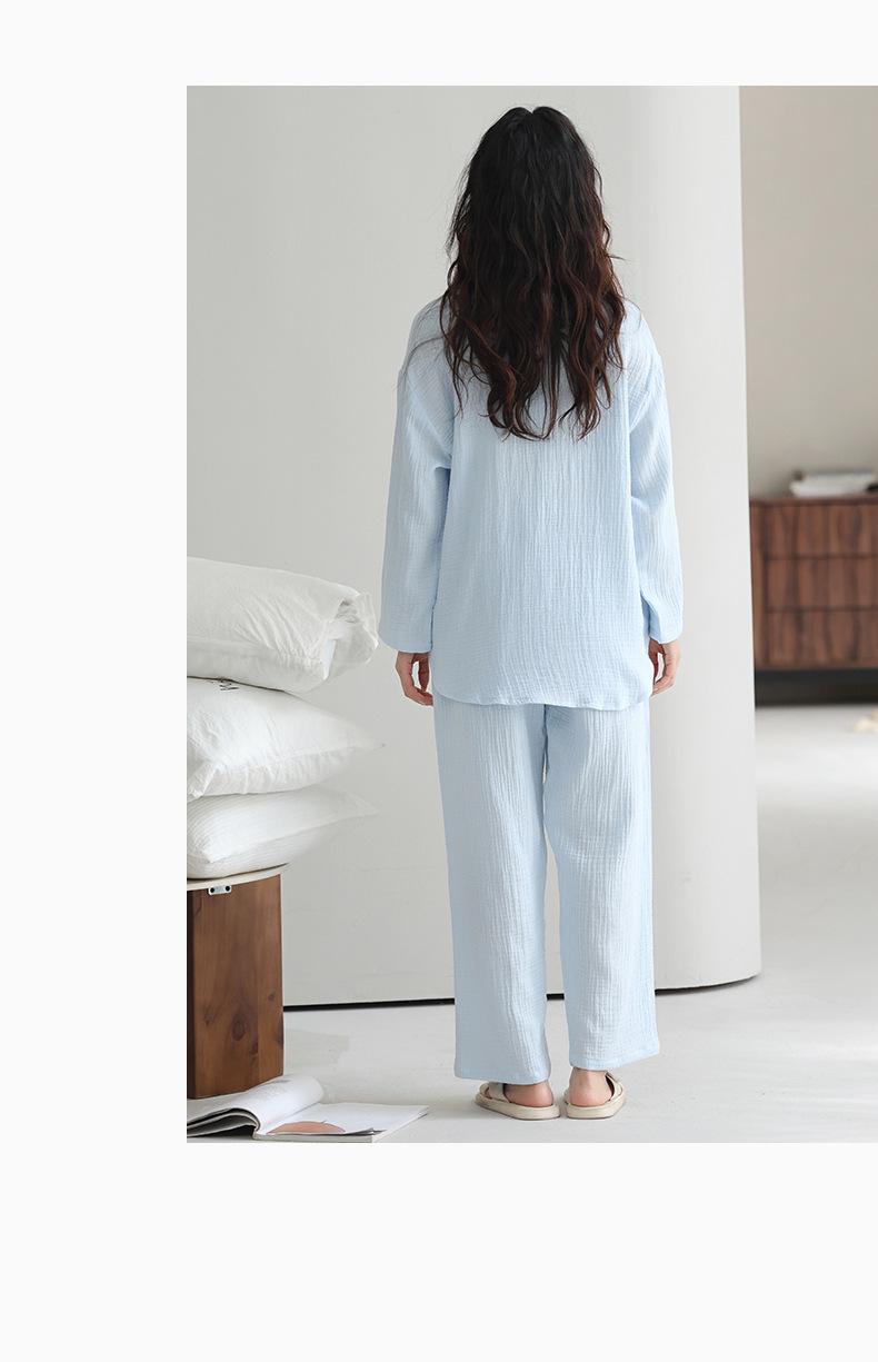 Pijama japonês de algodão com duas camadas feminino primavera e outono 2025 novo estilo de roupa para casa calças de manga comprida terno primavera vestindo