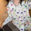 [Barbie Milk Leopard] 2025 Primavera Novos Pijamas de Seda Gelada Estilo Coreano Tijolo Quente Leopardo Amor Casa Vestir Manga Longa
