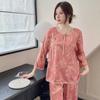 Pijama de Seda Gelo de Primavera e Outono para Mulheres com Acabamento em Renda, Conjunto de Roupa de Dormir Feminino Estilo Palácio de Manga Comprida em Seda Imitada, Estilo Fofo