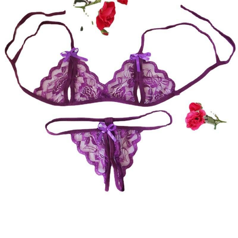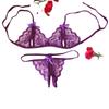 Roupa íntima sexy de três pontas, biquíni de renda, pijama, tanga, conjunto de duas peças para presente