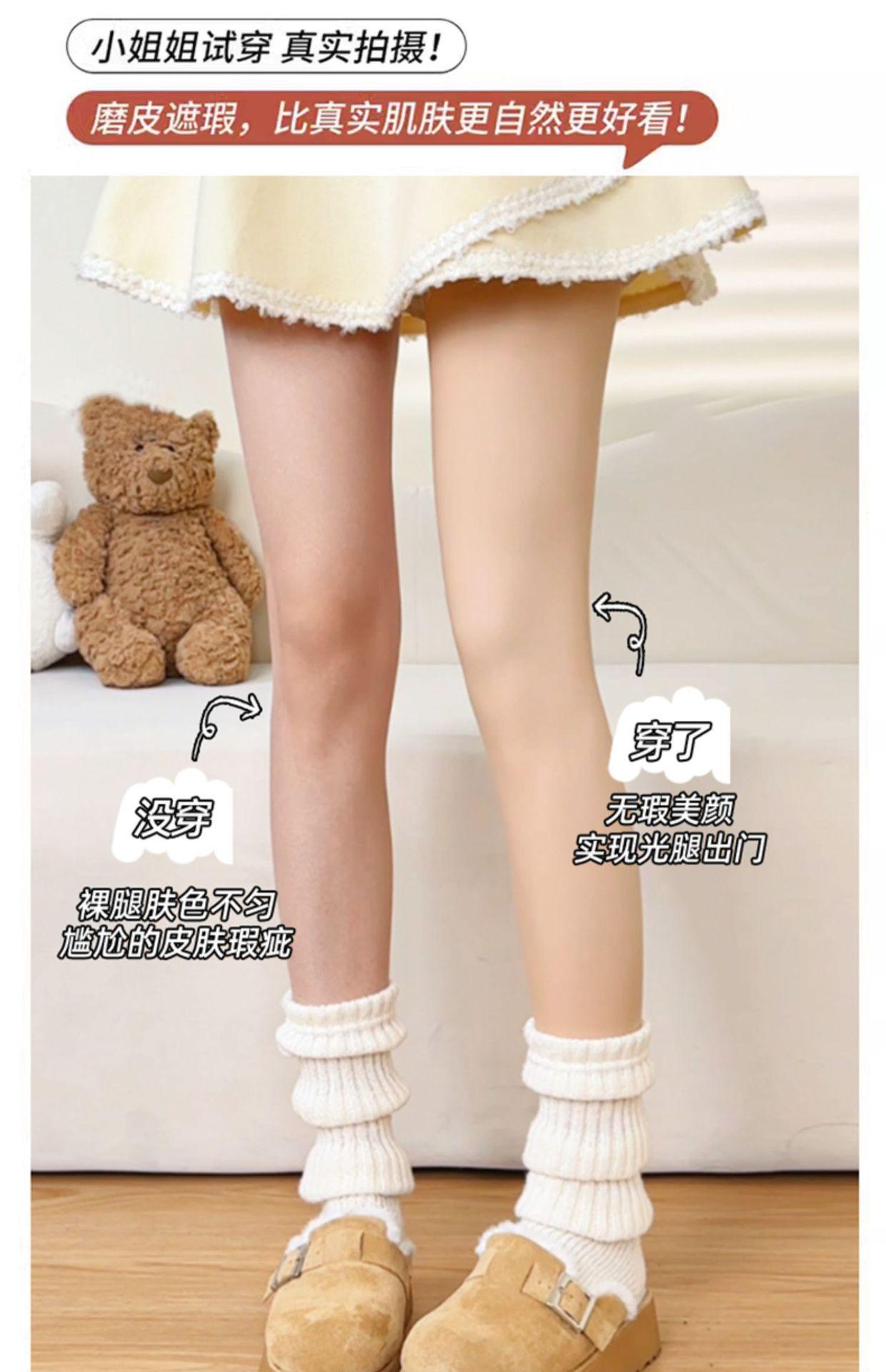 Artefato de perna leve feminino outono e inverno forrado de lã grossa nua natural delicada água meias leves finas não podem cair virilha meia-calça atacado