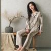 Pijama de seda gelada feminino de manga comprida primavera e outono, cor sólida de alta qualidade, pode usar roupas externas finas de seda para casa no verão