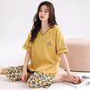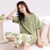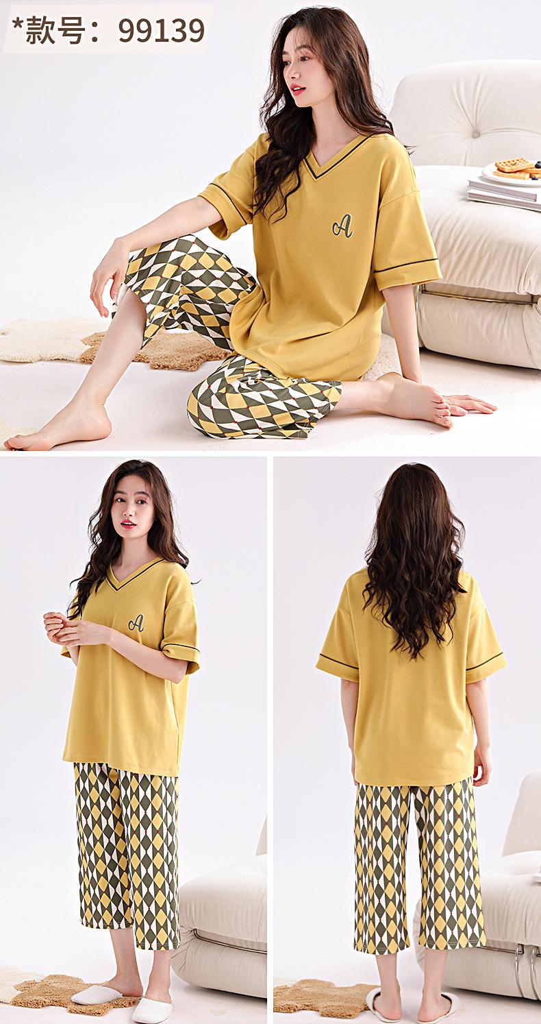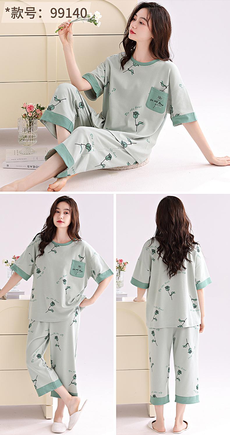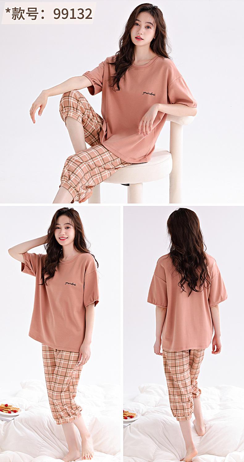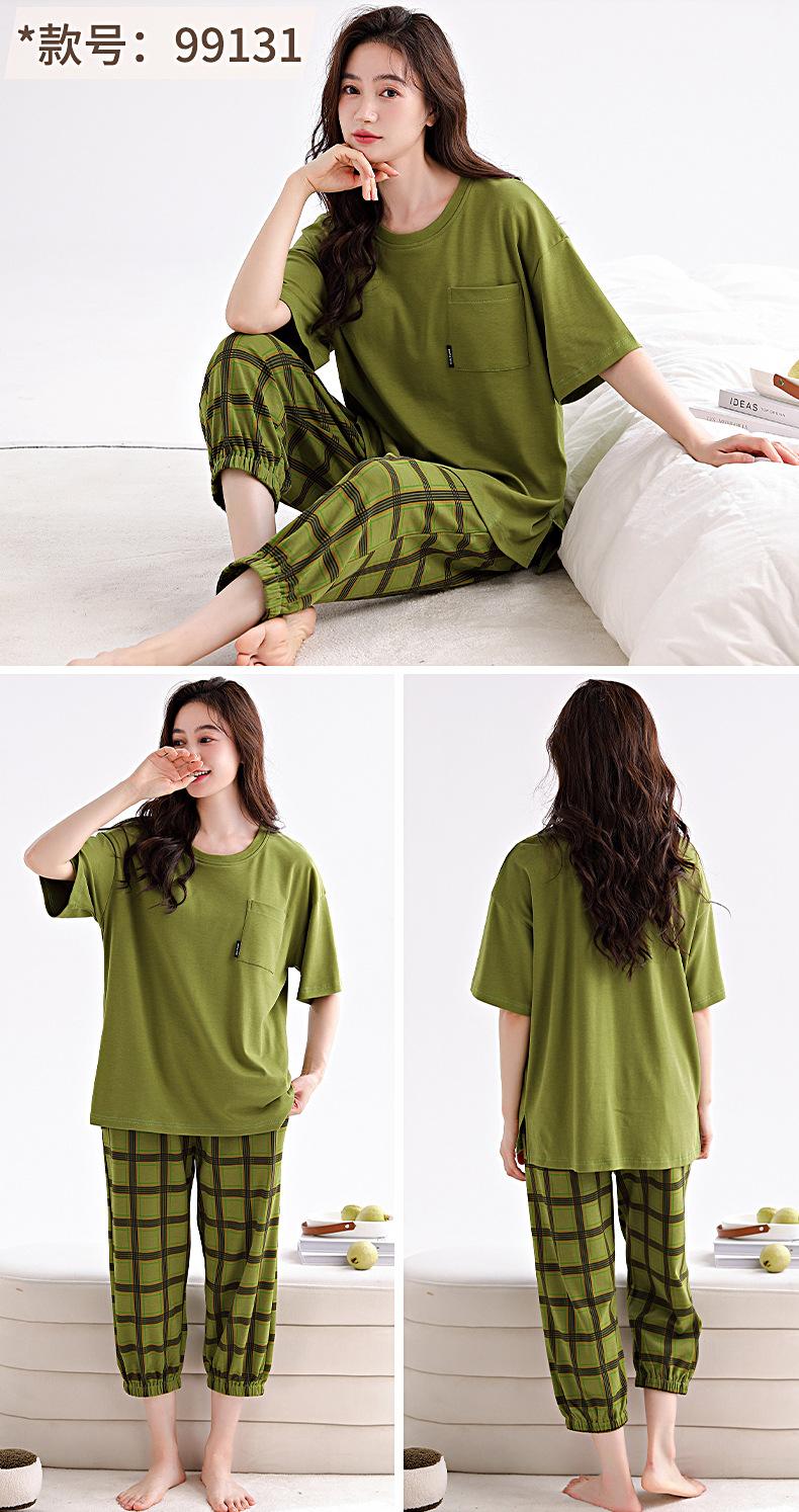 2025 Verão Algodão Pijamas Femininos Verão Exterior Vestindo Novo Algodão Manga Curta plus size Roupas de Casa Terno de Gola Redonda