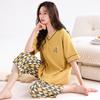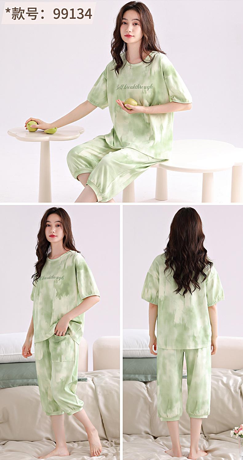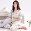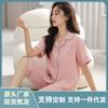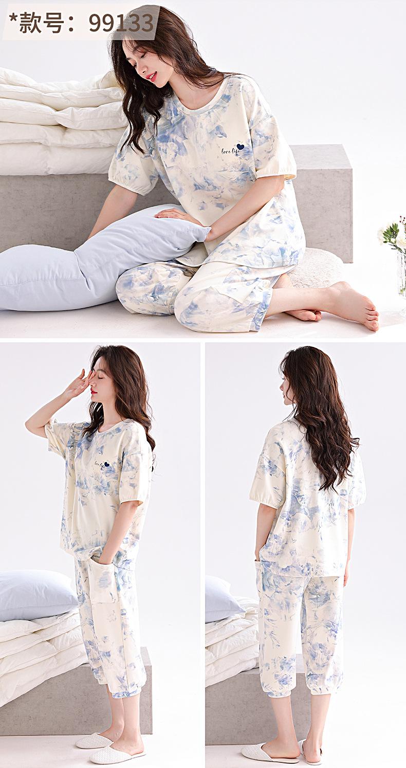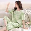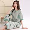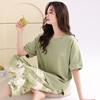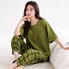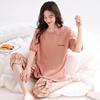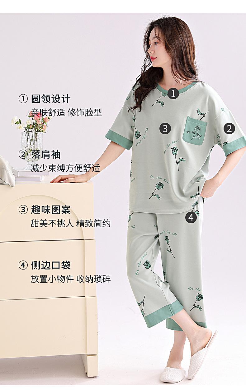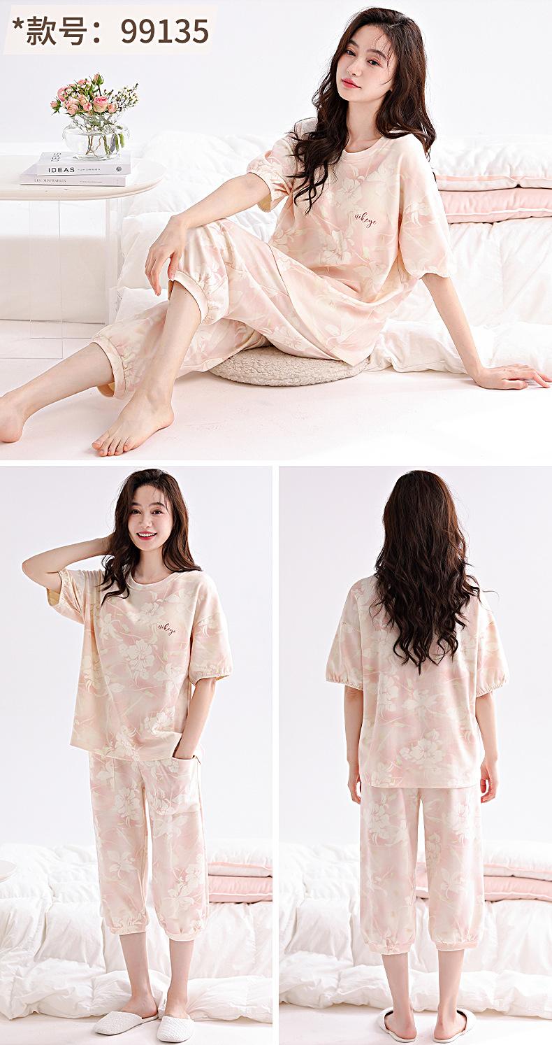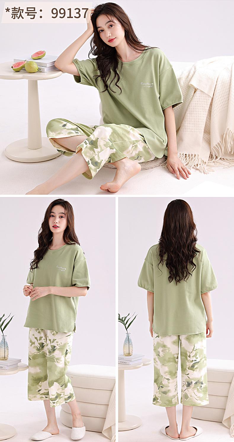 2025 Verão Algodão Pijamas Femininos Verão Exterior Vestindo Novo Algodão Manga Curta plus size Roupas de Casa Terno de Gola Redonda