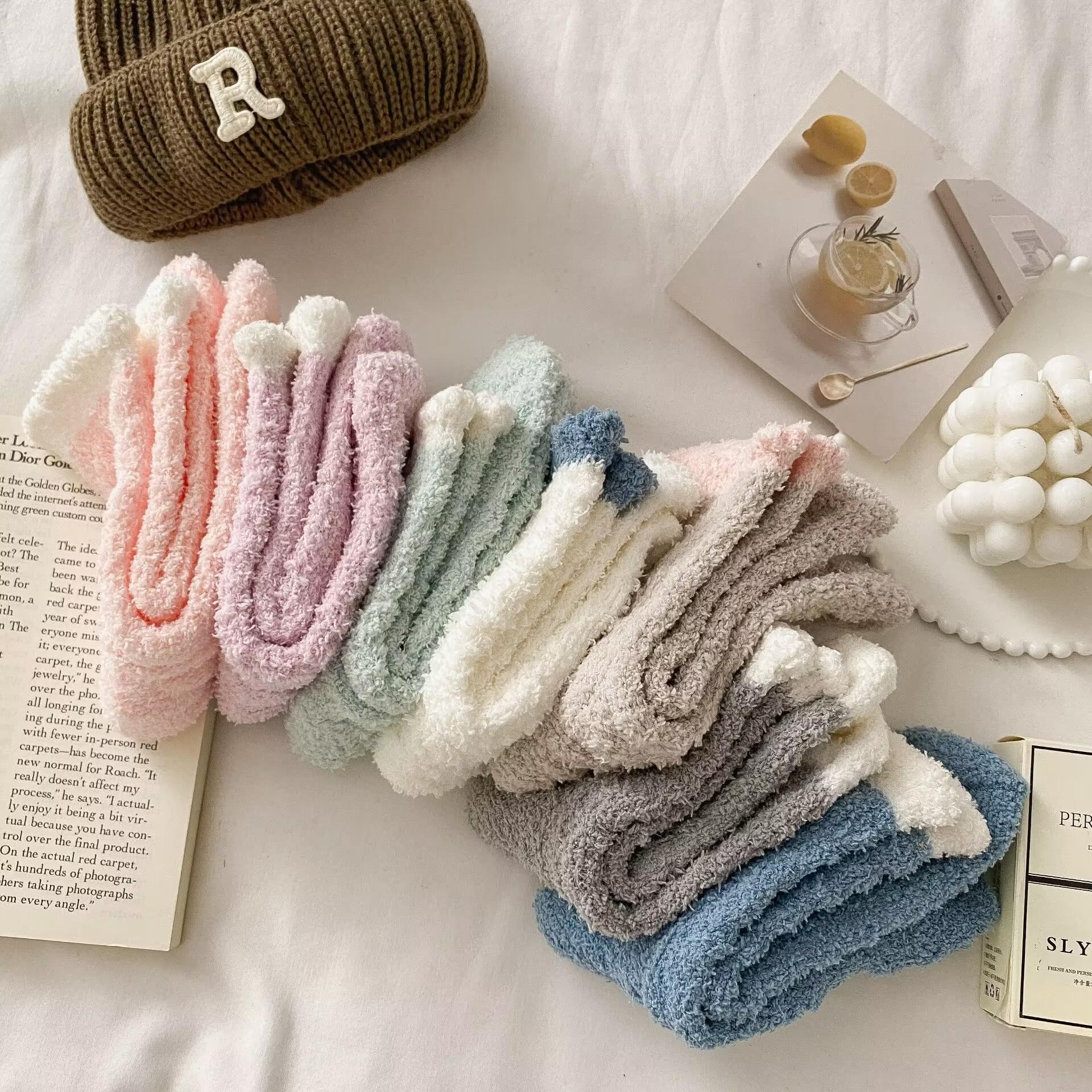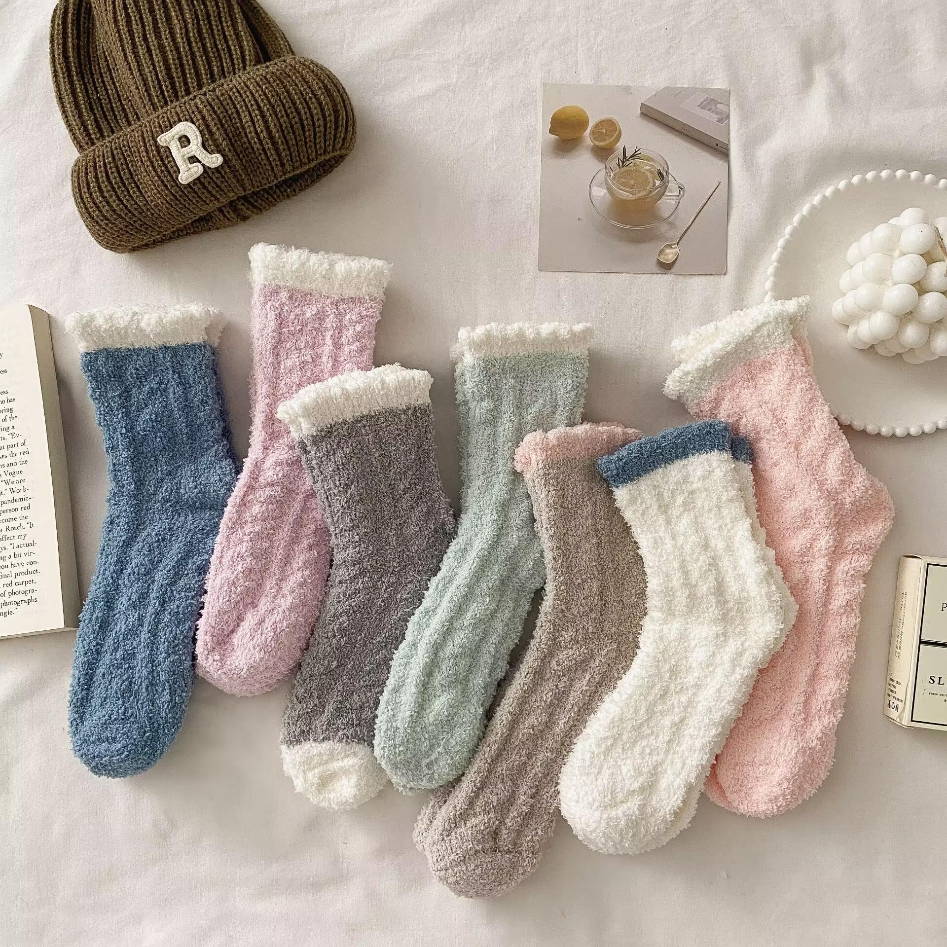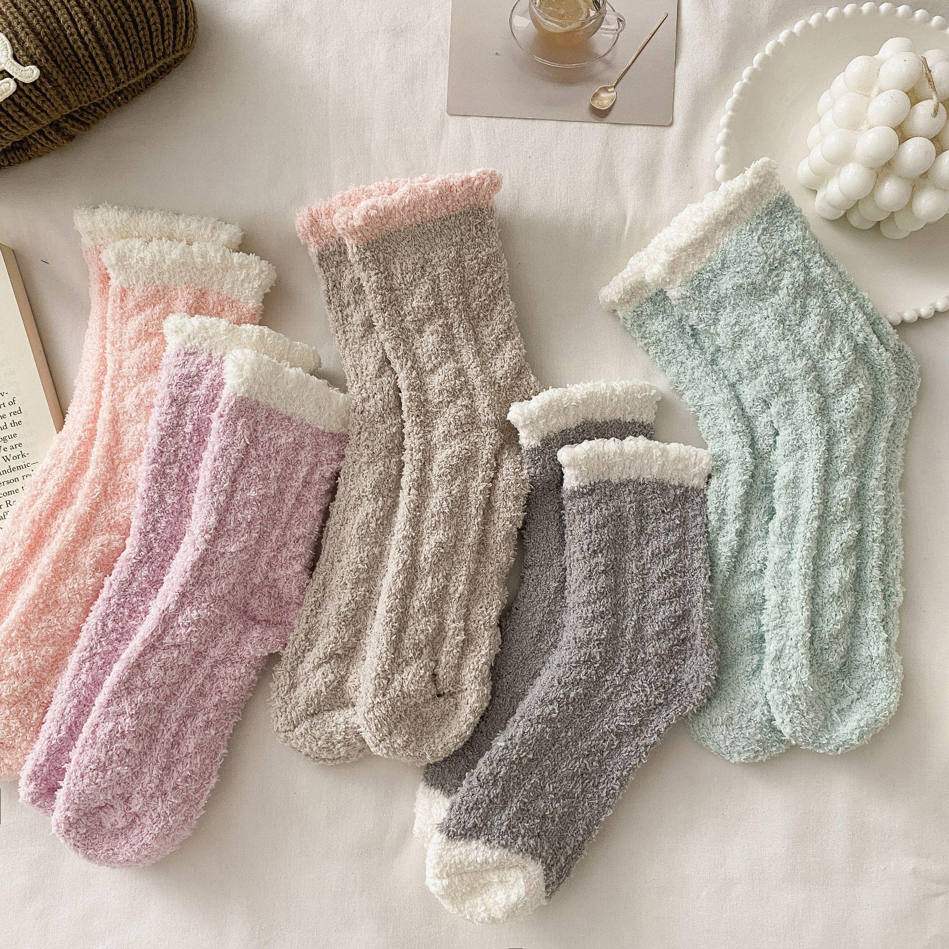 Meias de lã coral Moon para mulheres pós-parto outono e inverno com forro de lã engrossado inverno quente toalha de dormir meias de chão