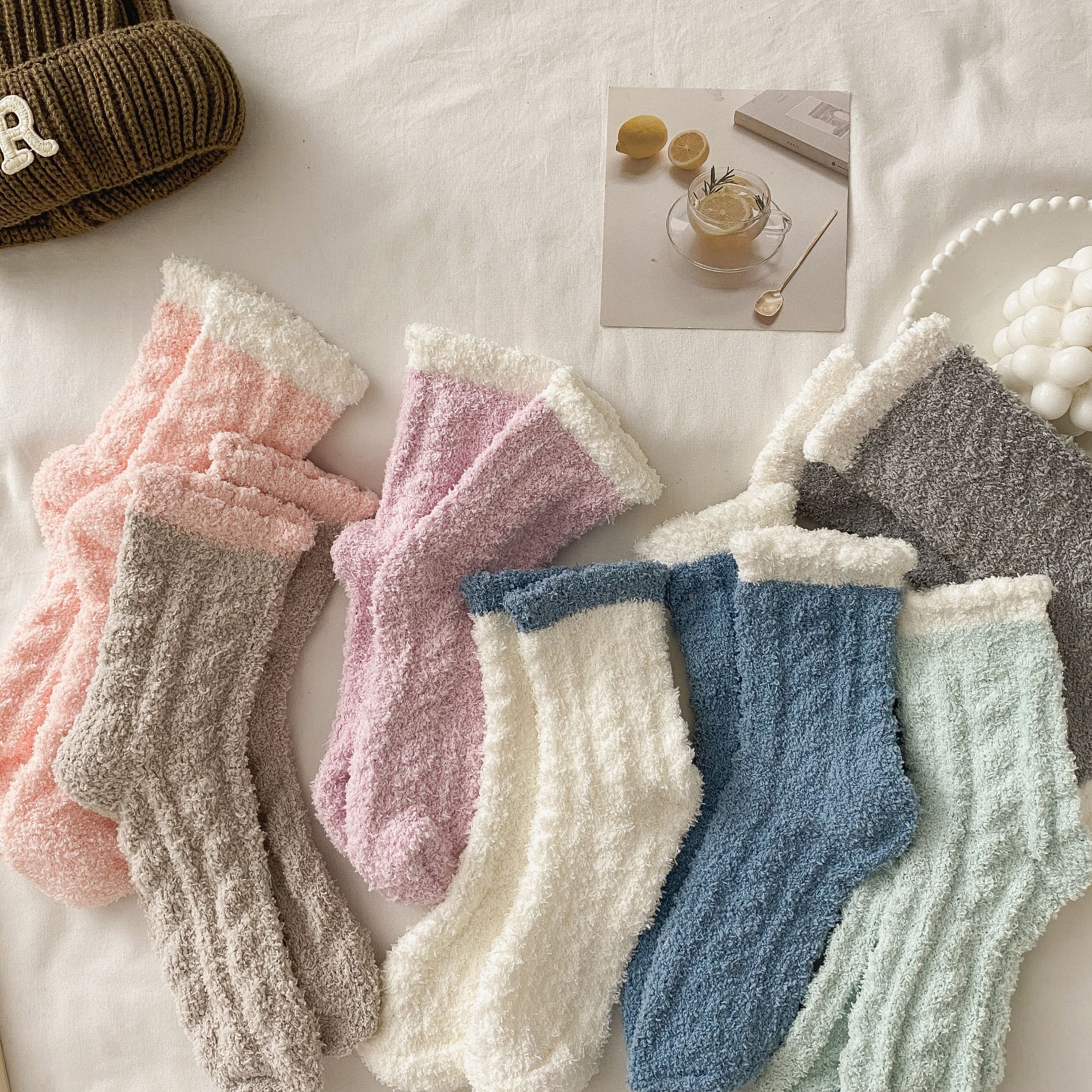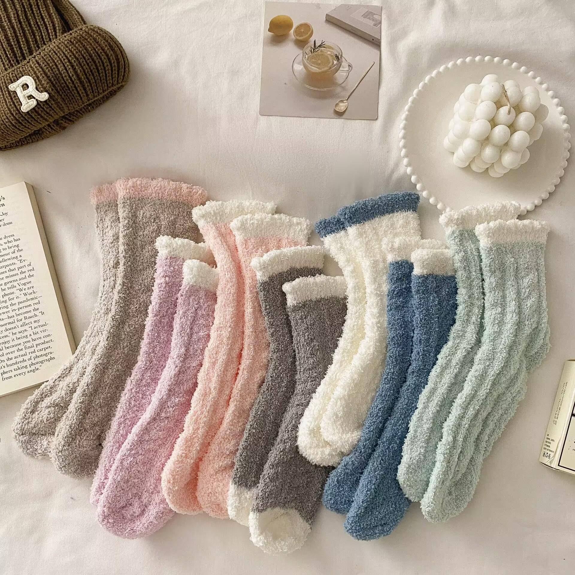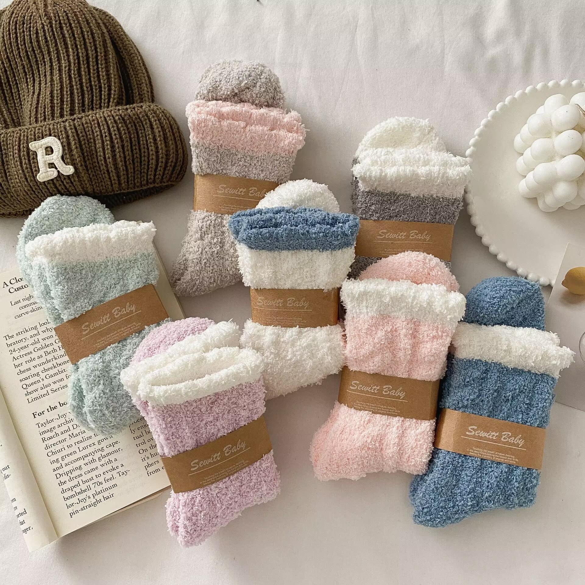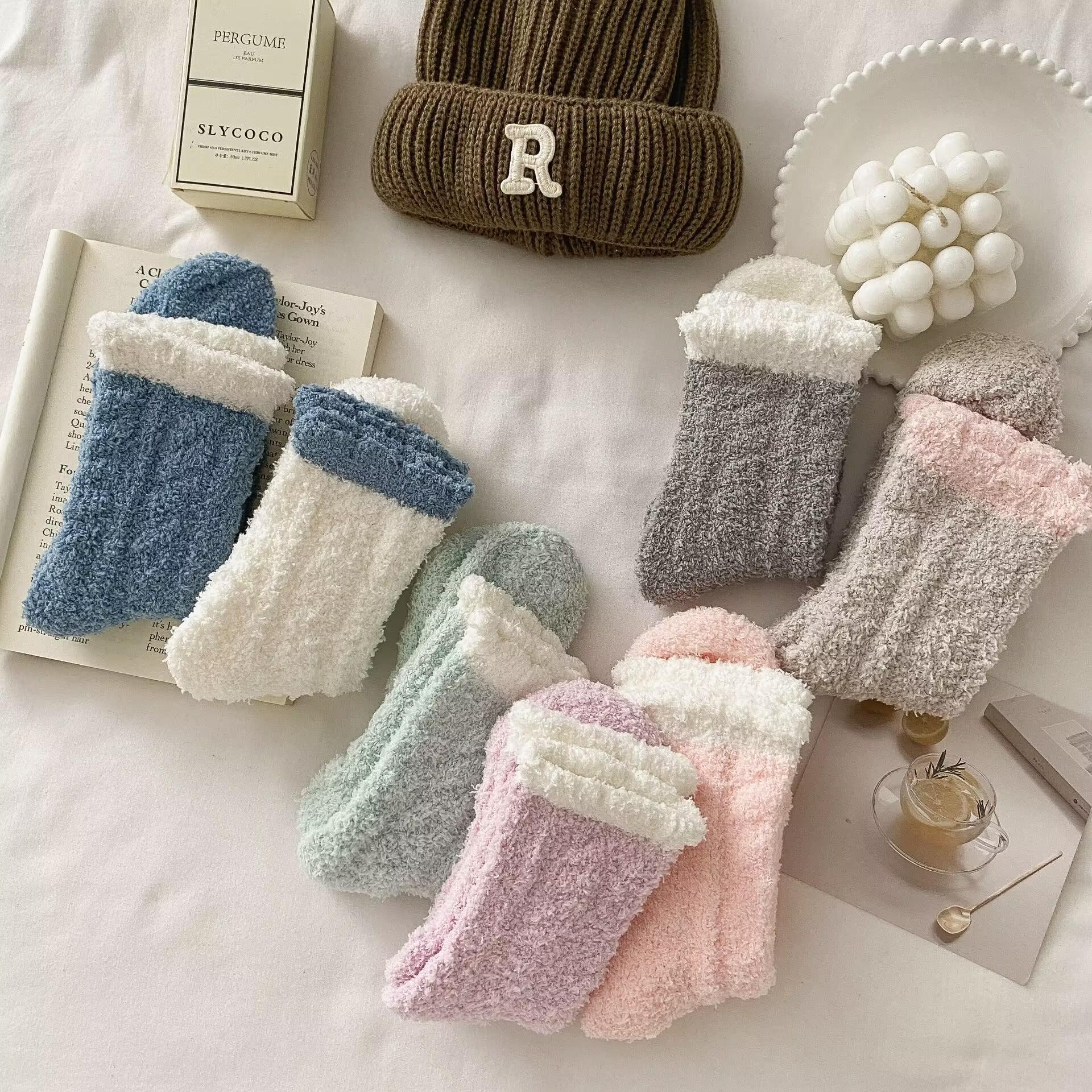 Meias de lã coral Moon para mulheres pós-parto outono e inverno com forro de lã engrossado inverno quente toalha de dormir meias de chão