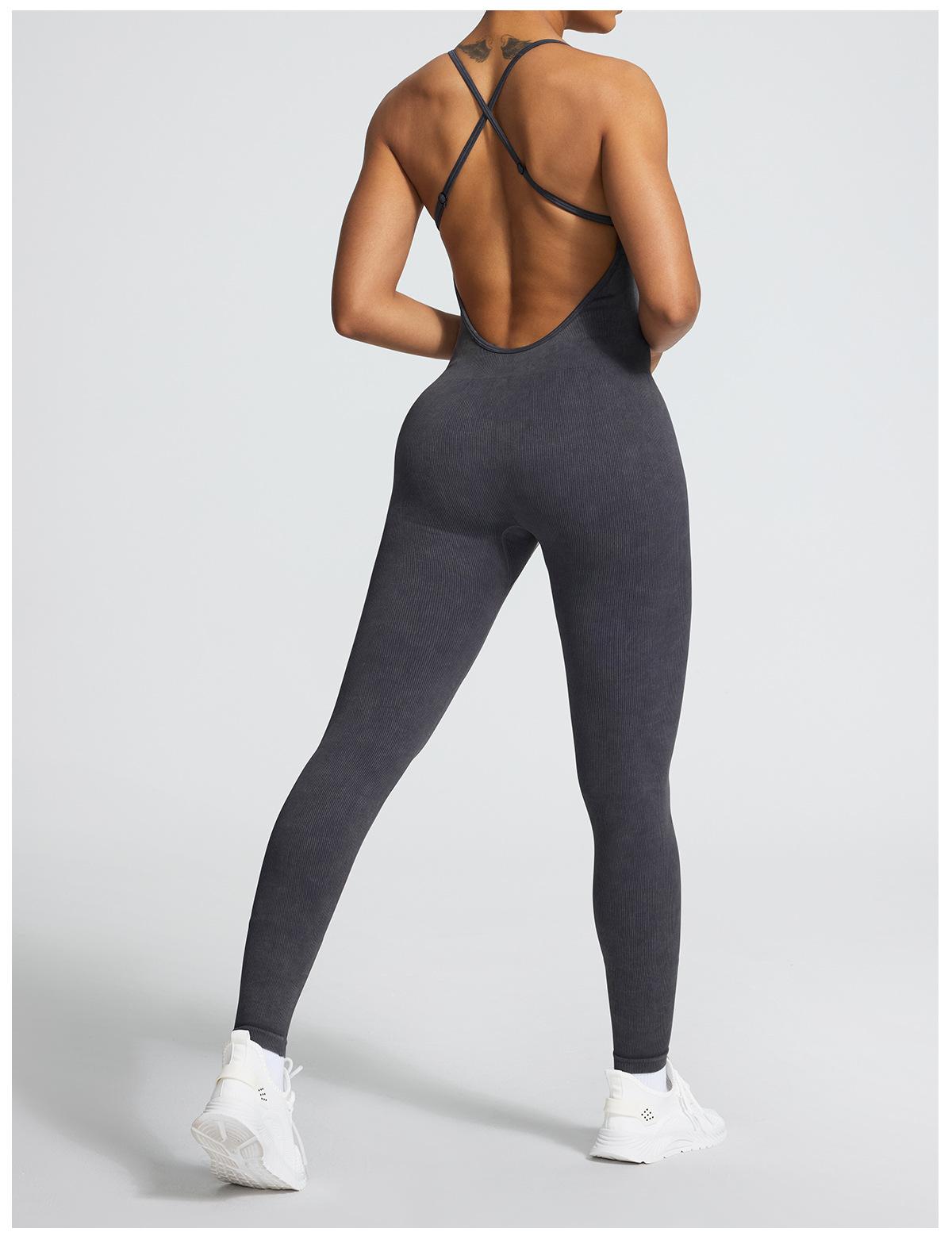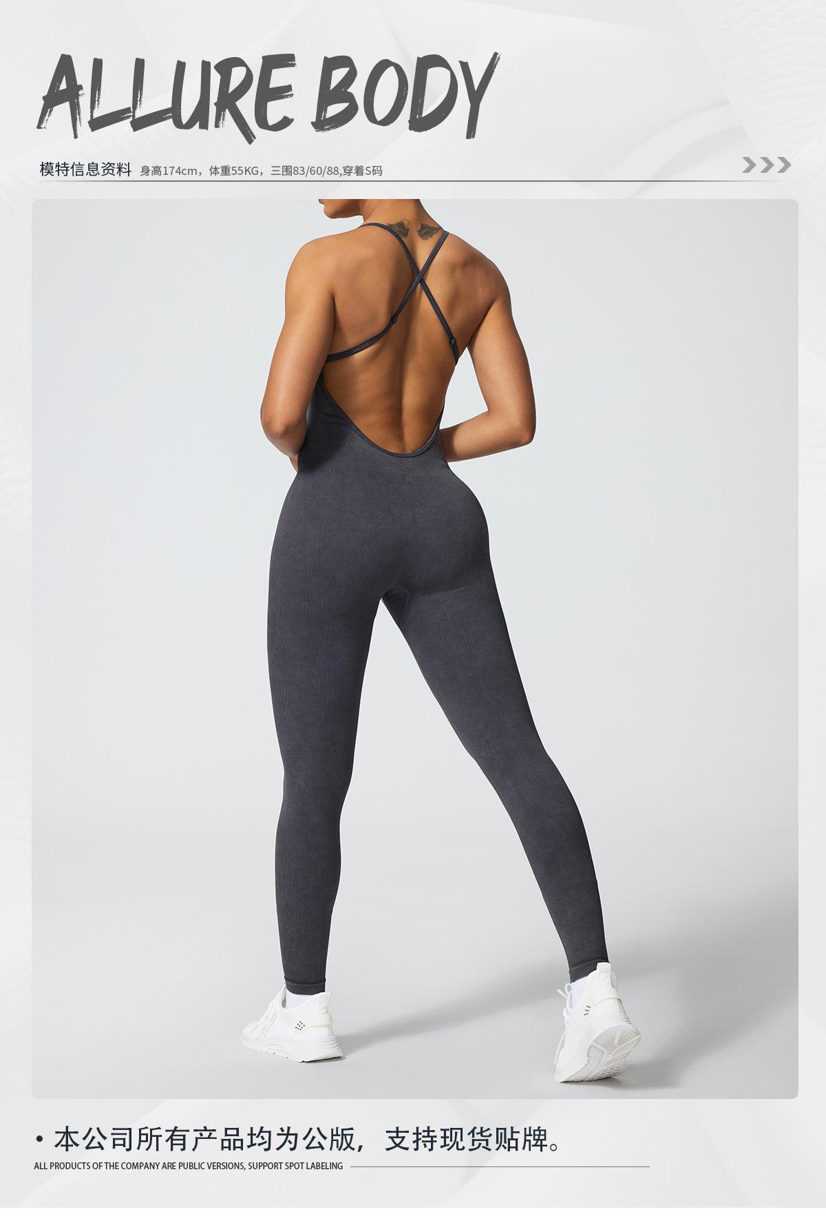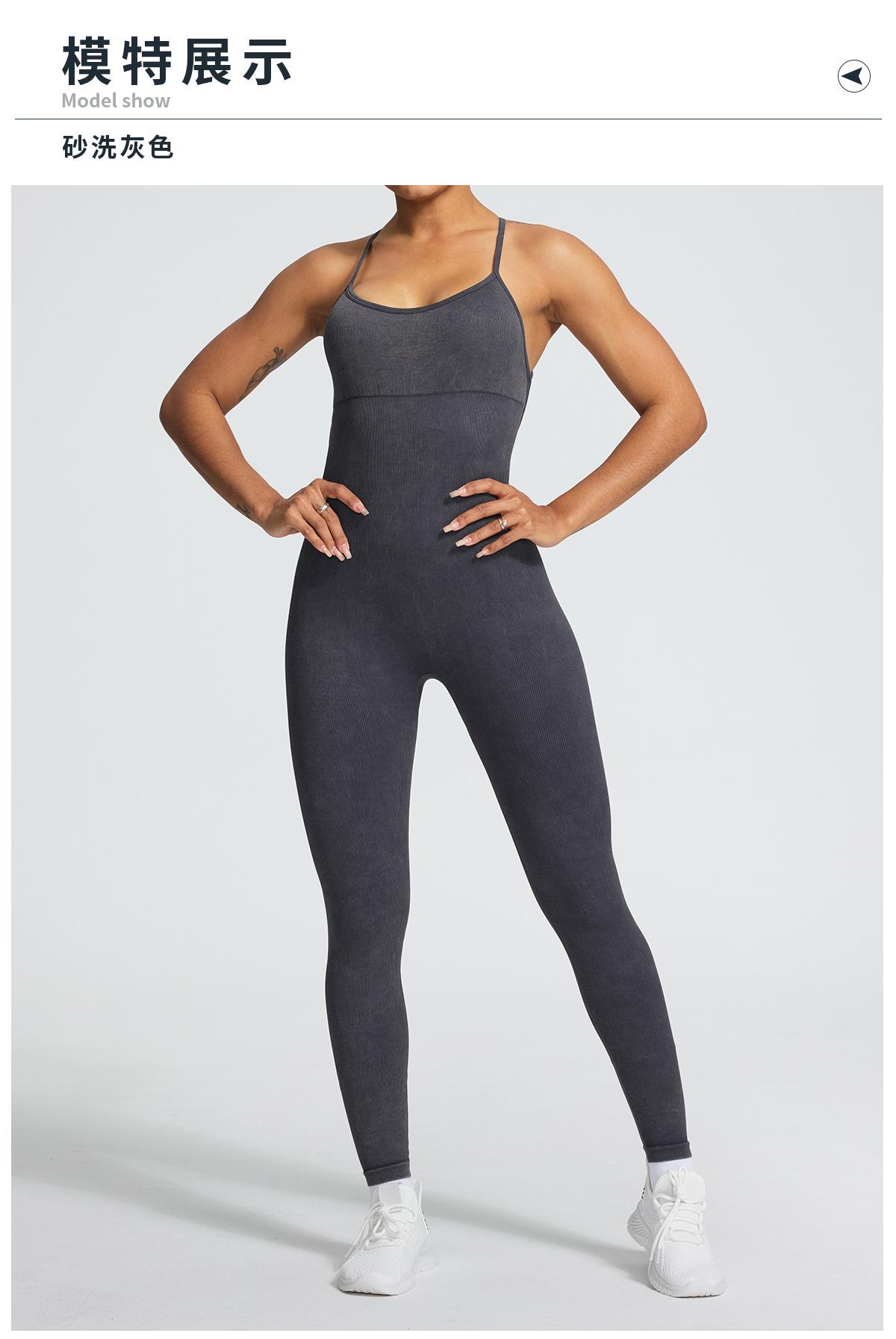 Roupa de Yoga Esportiva Macacão de Yoga Sem Costura de Alta Elasticidade Lavada na Areia Transfronteiriça Costas Lindas Cruzadas Cintura Fitness Roupa de Yoga Macacão Esportivo de Uma Peça