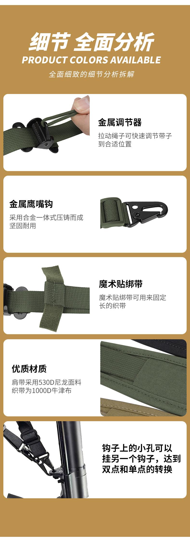 Corda tática multifuncional de dois pontos para armas, em nylon 1000D com camuflagem, para uso externo, com cordão.