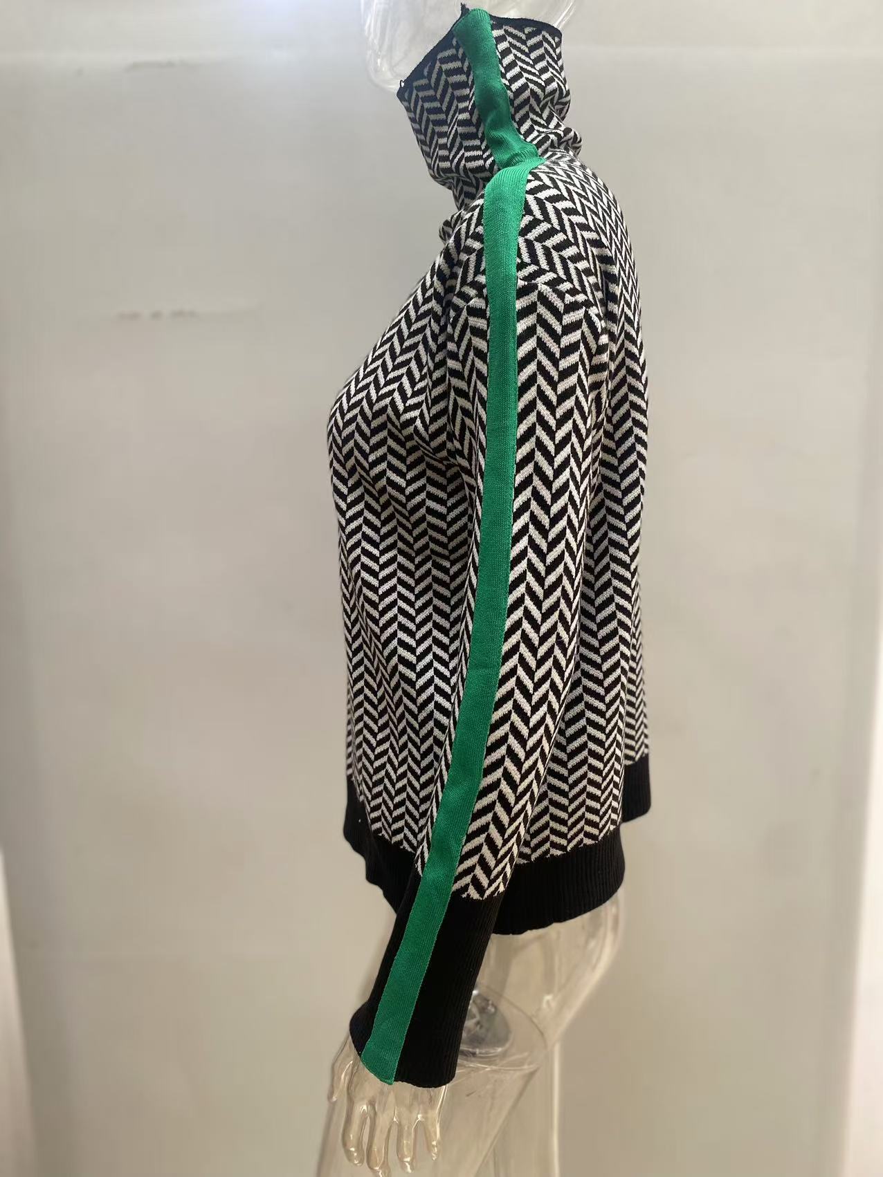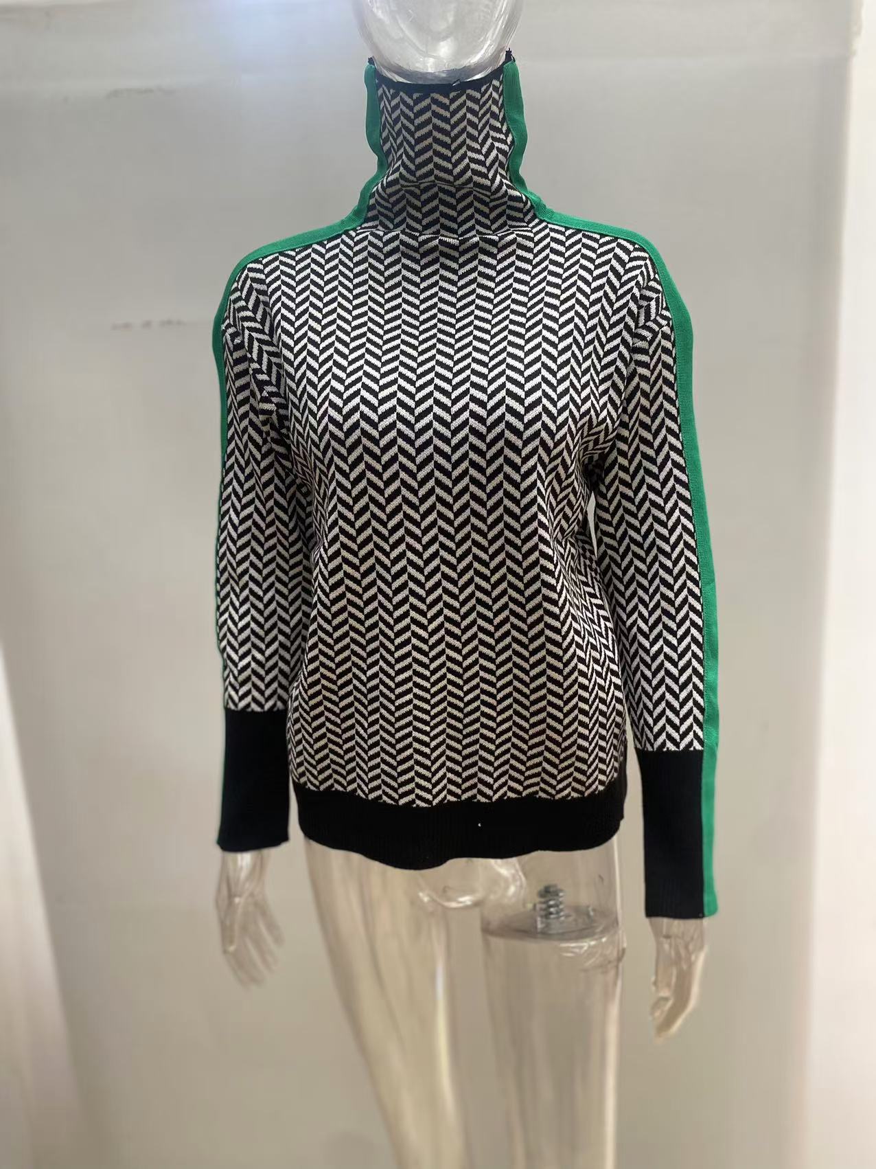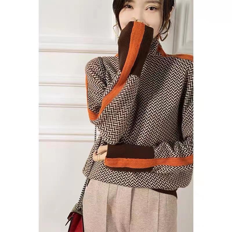 Comércio exterior transfronteiriço Outono e Inverno Design sentimento preguiçoso solto contraste cor manga imitação completa de lã gola alta camisola camisola das mulheres outono e inverno