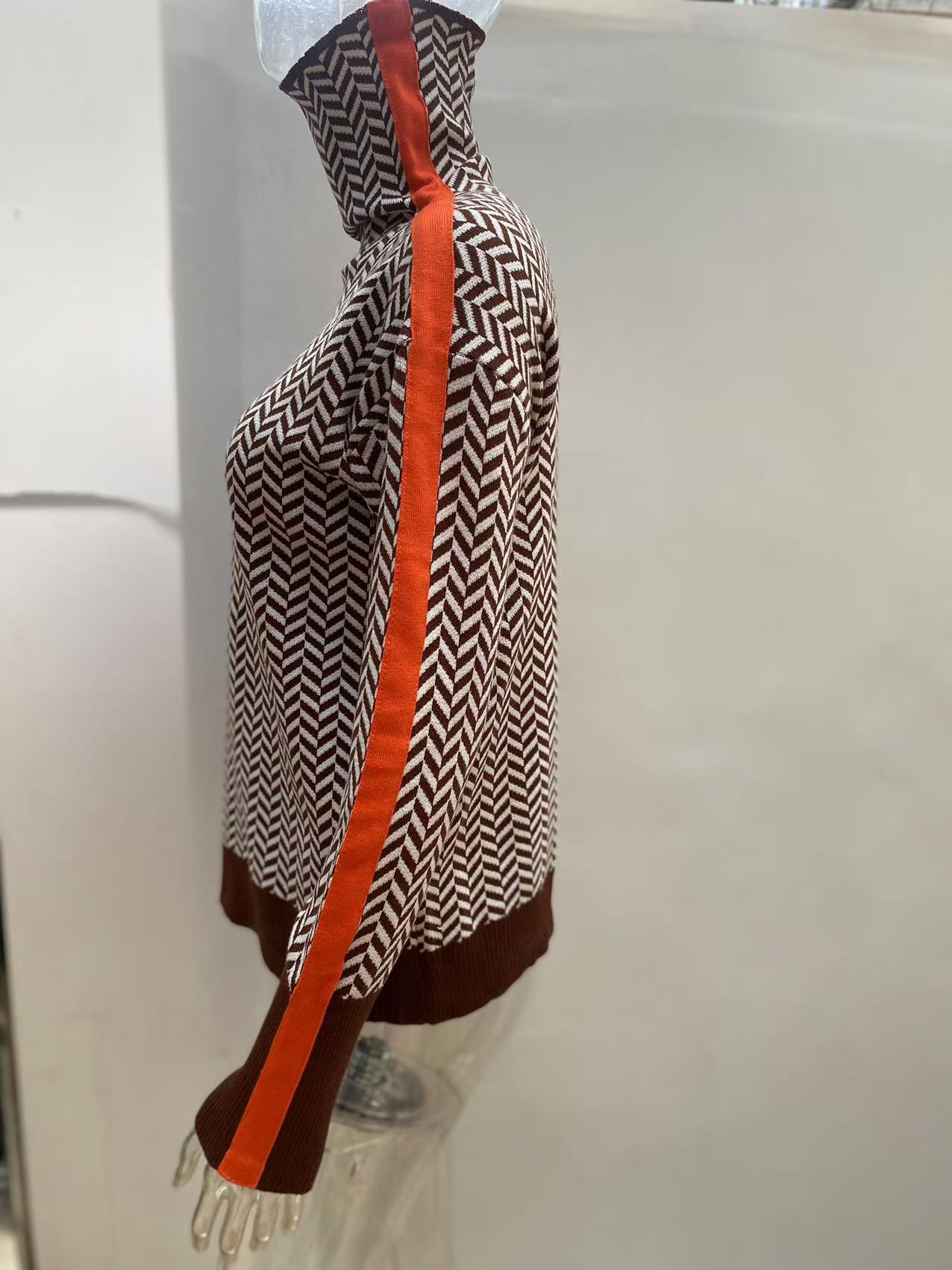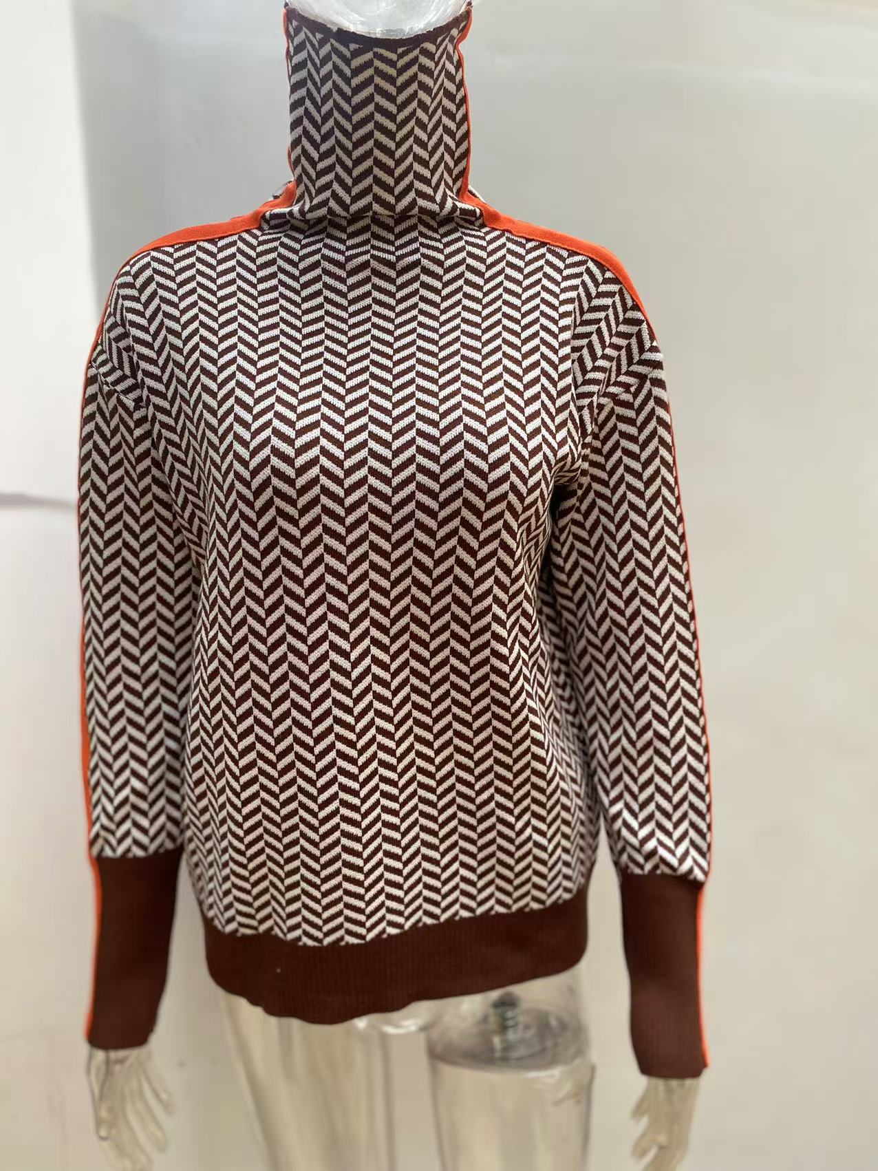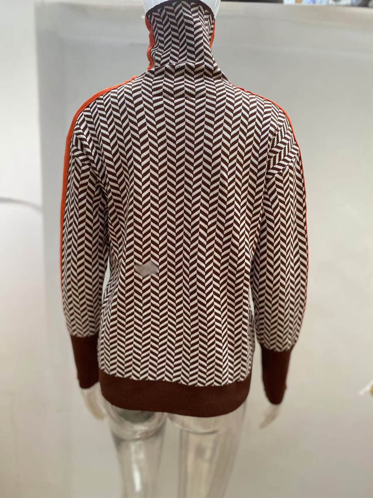 Comércio exterior transfronteiriço Outono e Inverno Design sentimento preguiçoso solto contraste cor manga imitação completa de lã gola alta camisola camisola das mulheres outono e inverno