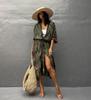 O comprimento do ombro à bainha é de aproximadamente 104 cm, e o comprimento das costas é de aproximadamente 135 cm. O peso é de 254 gramas.