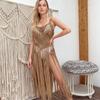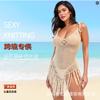 Blusa de biquíni de praia feminina, camisa de tecido feminina europeia e americana transfronteiriça, saia de praia sexy com alça oca