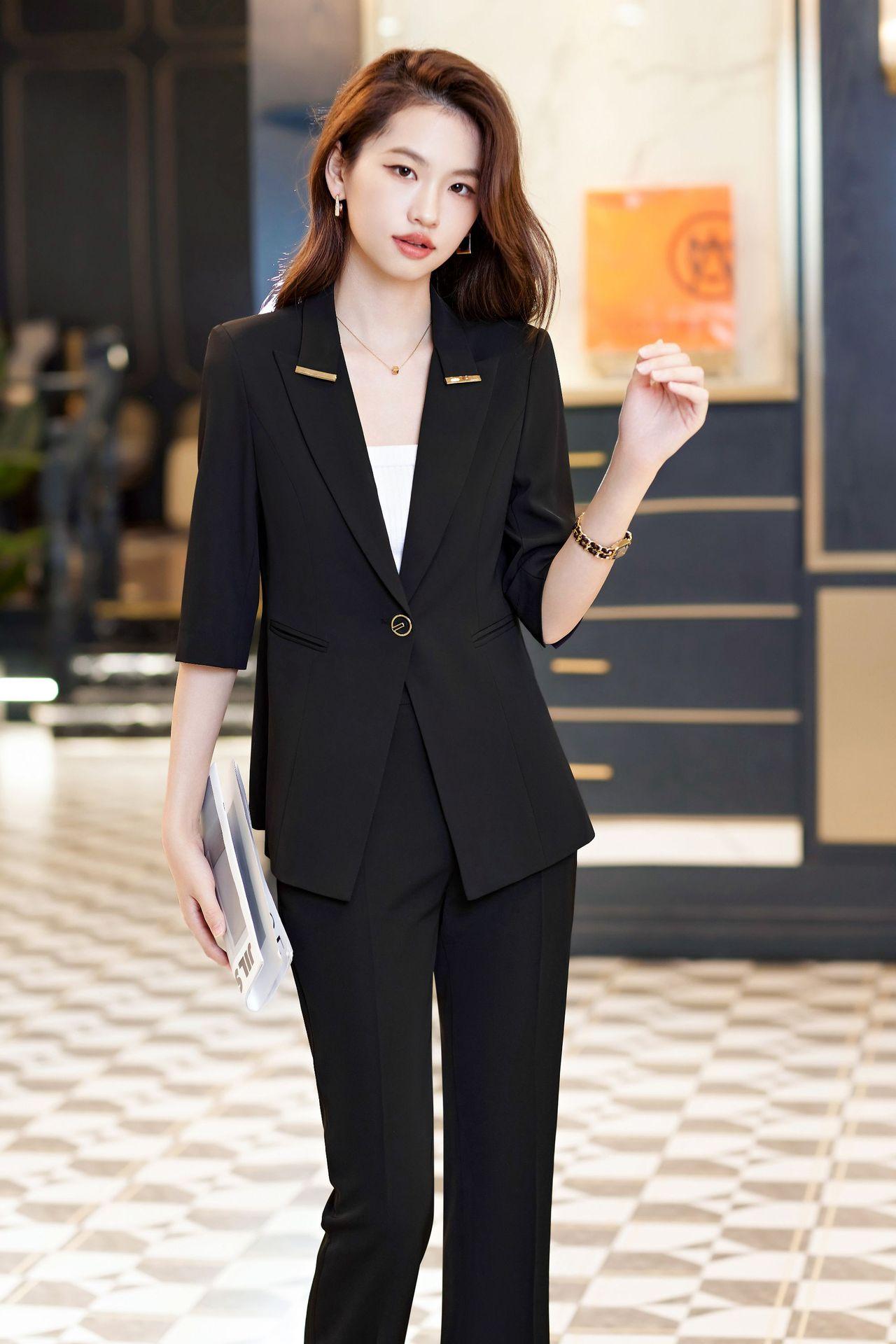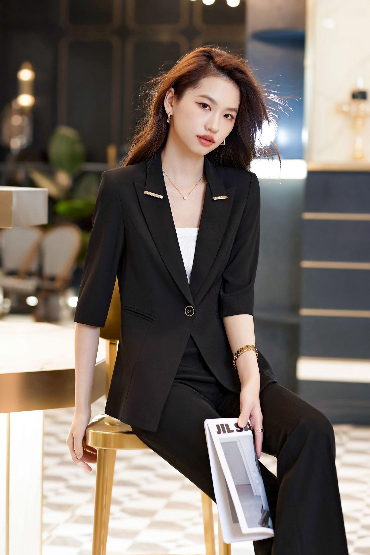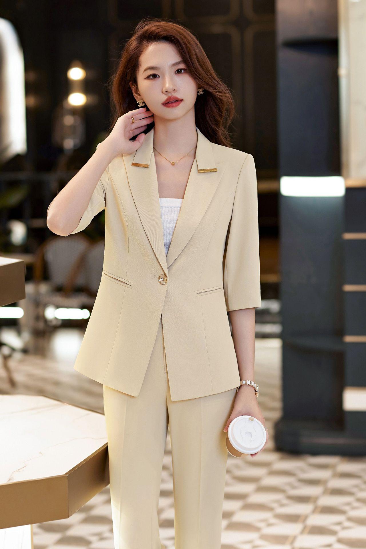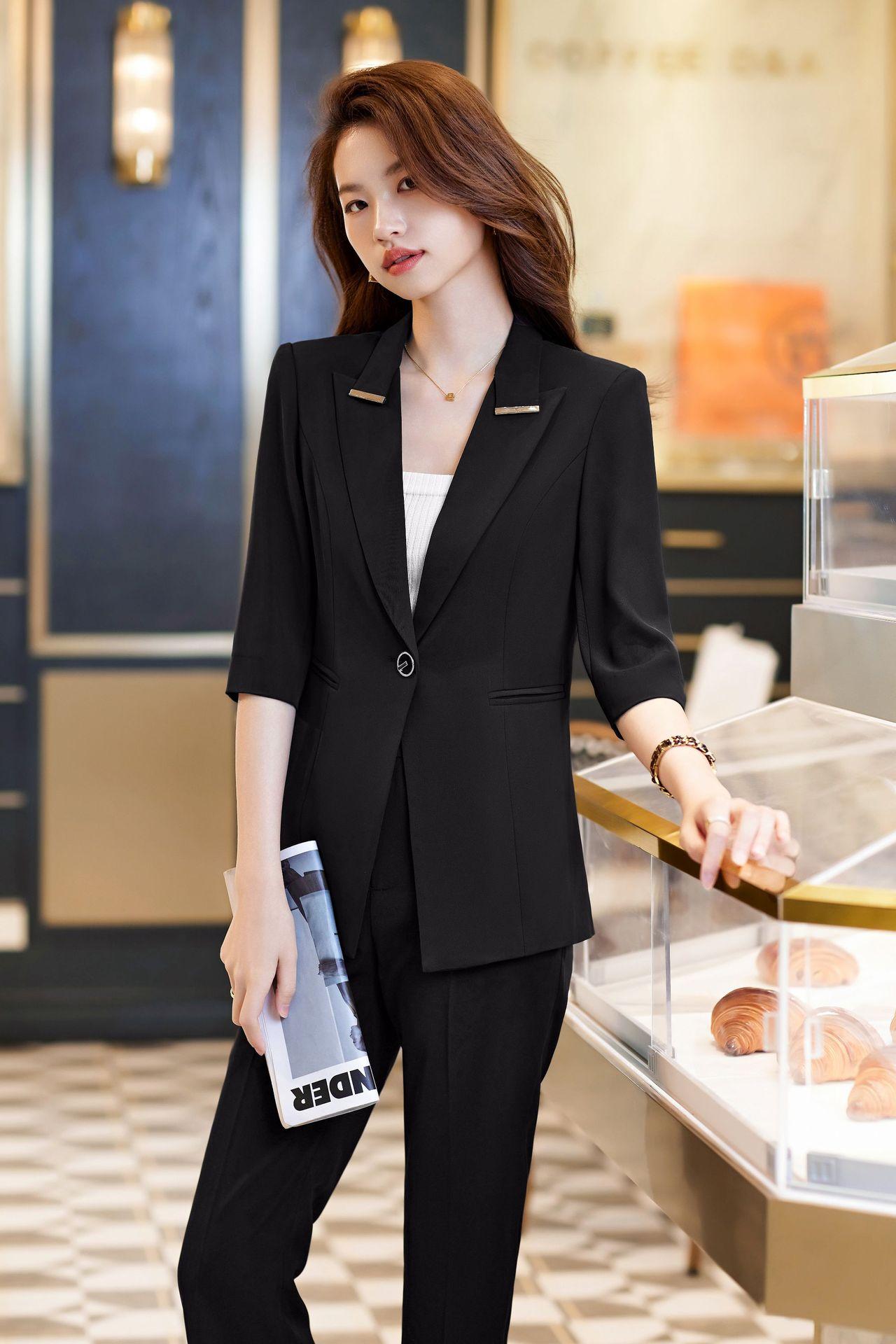 Moda primavera e verão damasco meia manga terno feminino fino terno de negócios calças temperamento deusa estilo ol terno macacão